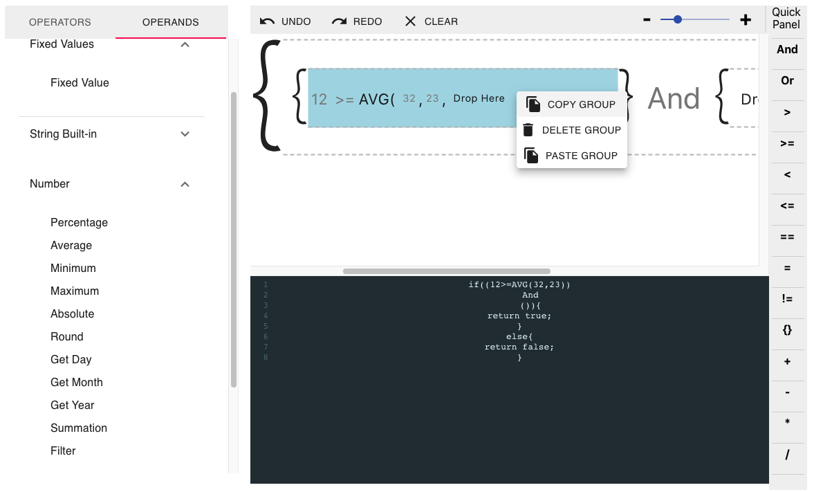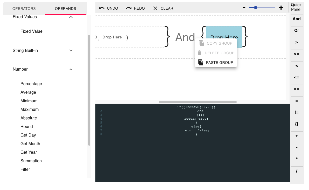 Using many functions, you can prepare conditions and expressions on the designer and see the code block formed after the design.