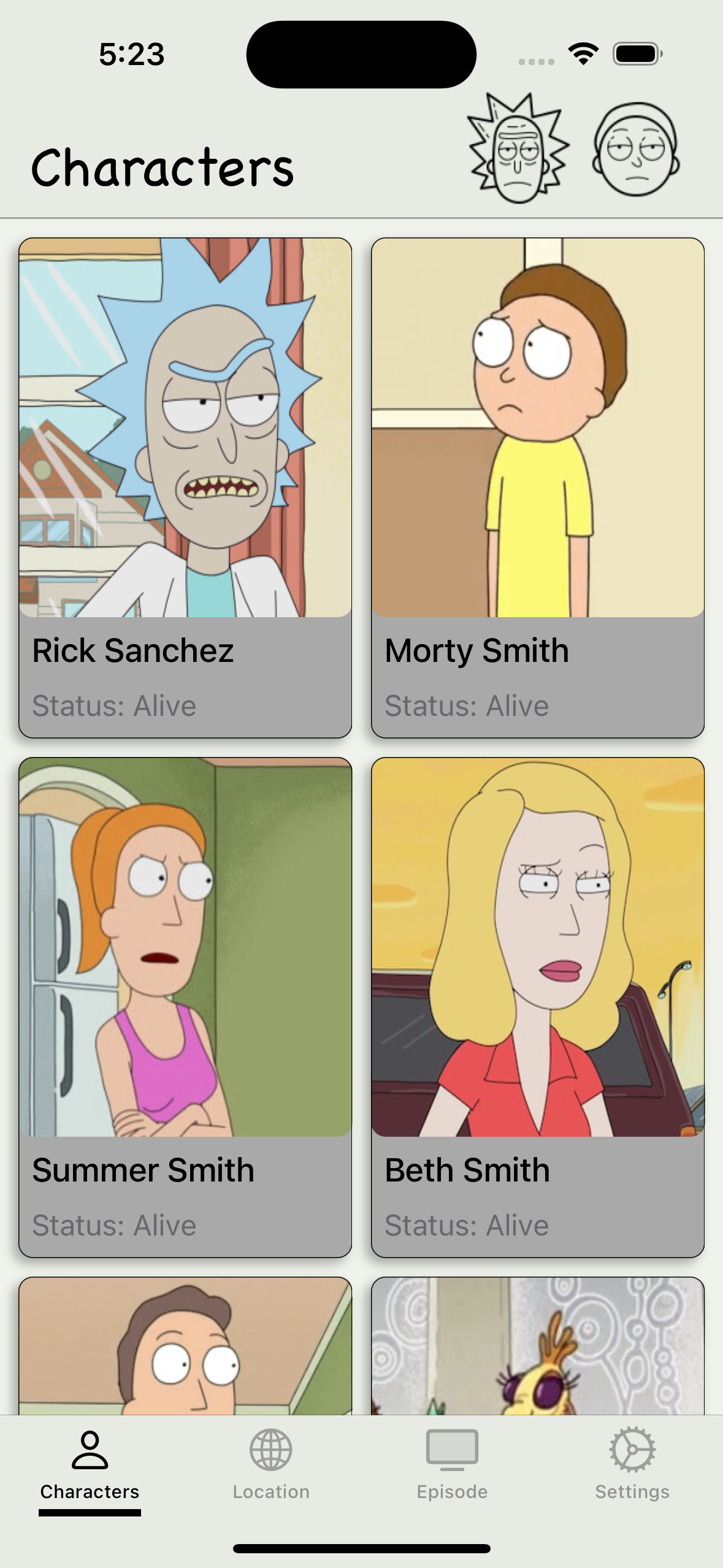 This project is primarily developed using the "https://rickandmortyapi.com" API and provides rich information about the characters and episodes of the Rick and Morty animated series. The project has been made in a design compatible with iPhone, iPad and Mac devices. In the project, UIKit was used in general, SwiftUI was used only in the settings page.