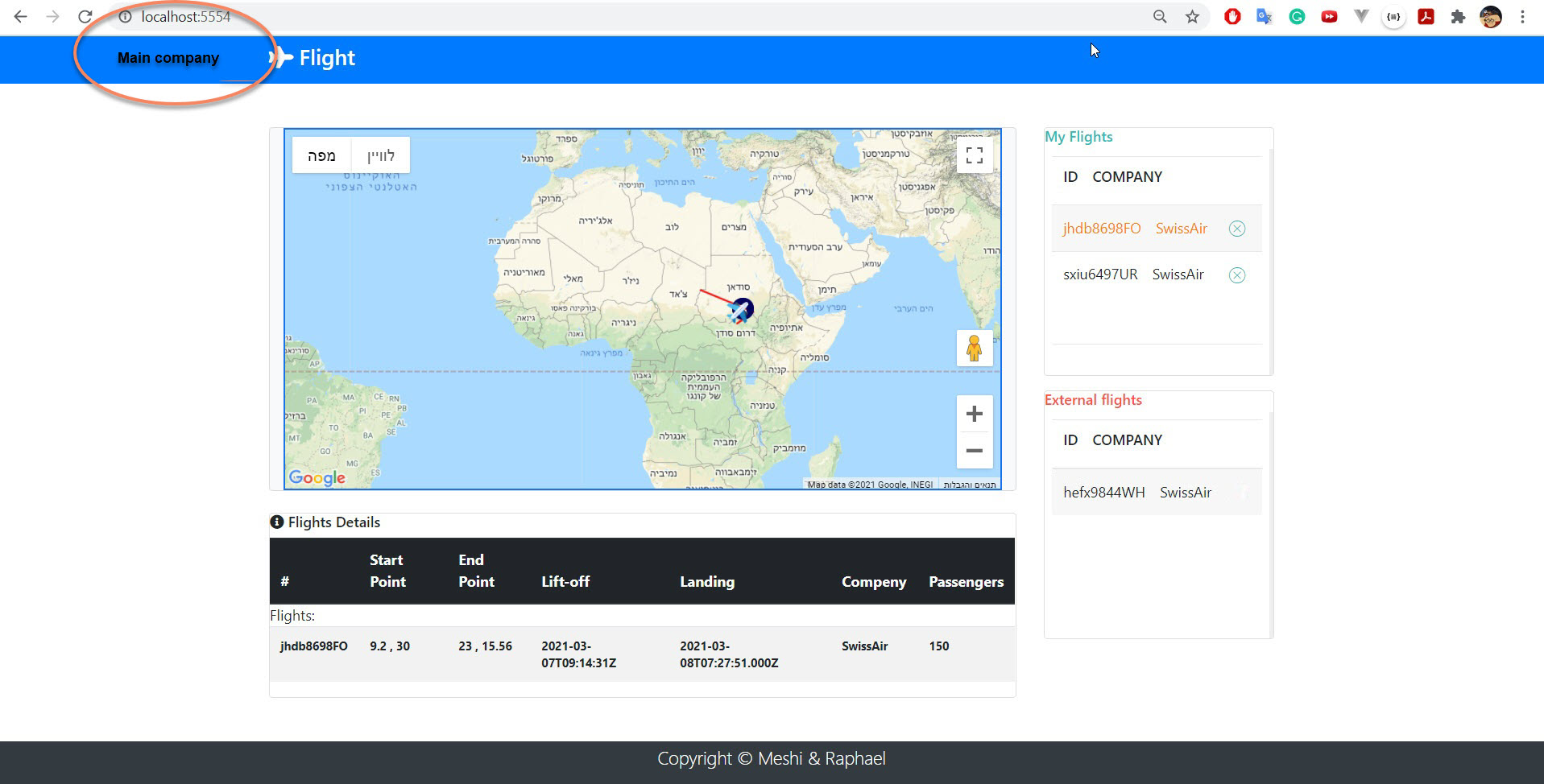 In this project, we built a web application using ASP.NET core. This application is a flights control system, showing flights routes on a world map and providing live information about the current active flight plans. In addition to the ability to track flights from this project server, the application can connect to other external servers and get information about their own flights. The client side is written with JavaScript and designed with Bootstrap. The server side is written with C#.