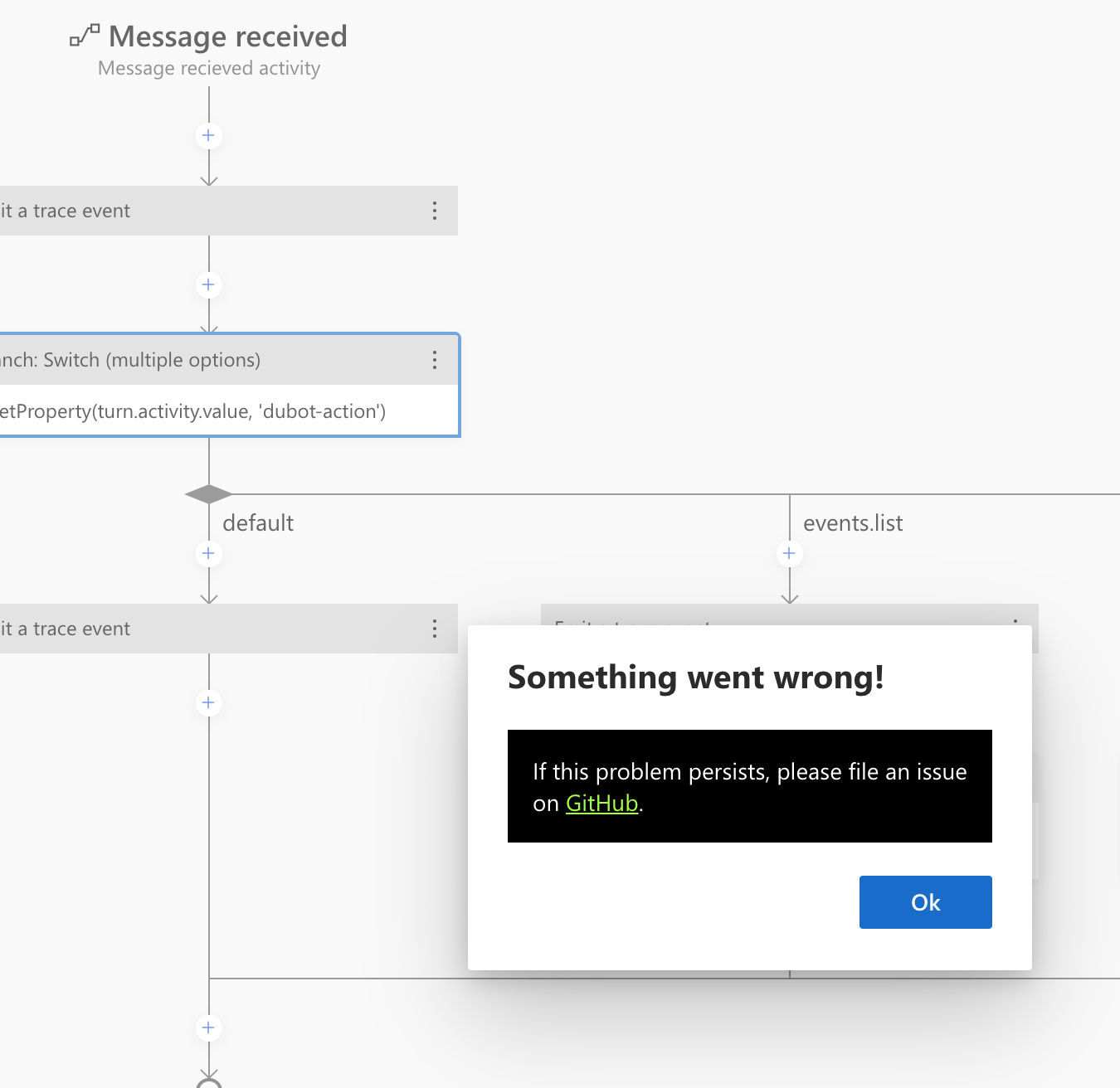 I've gotten this regardless of which authoring activity page I'm on. I've gotten it when I'm on the main authoring canvas. I've also gotten it when I was on the Publish page.