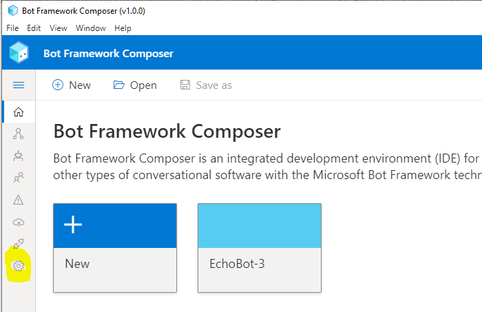The Settings > App Settings menu, which contains general Composer settings (e.g. editor preferences, nightly build updates, ..) is only available when a bot project is loaded. If no project is loaded, the cog is grayed out. A minor enhancement would be to make this Settings menu also available when no bot project is currently loaded, as there is no dependency on the bot logic.