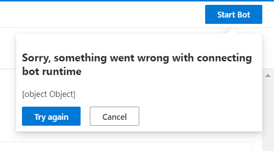 • either runtime code location or start command is not correctly set, start bot will hit following error