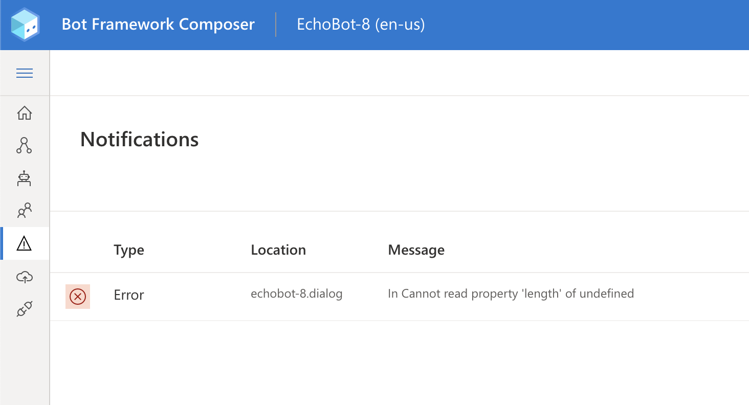 Add a Luis trigger may also trigger this bug, when refresh page, error gone.