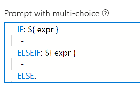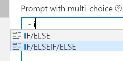 Note that there is still a bug where switching away from the Bot Asks tab and then back again will cause the list of suggestions to add another entire set (if I type "- if" it will then display two sets of if/else and if/elseif/else). Doing this again will make a triple set, and so on. That will be addressed later.