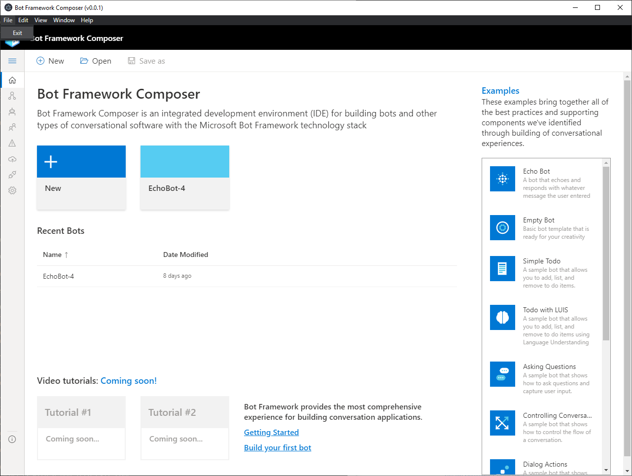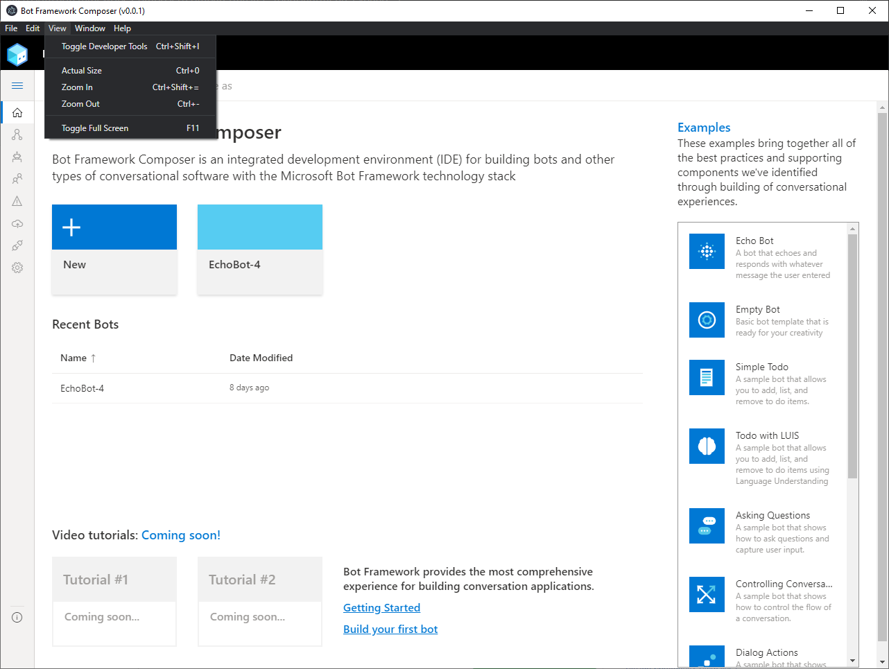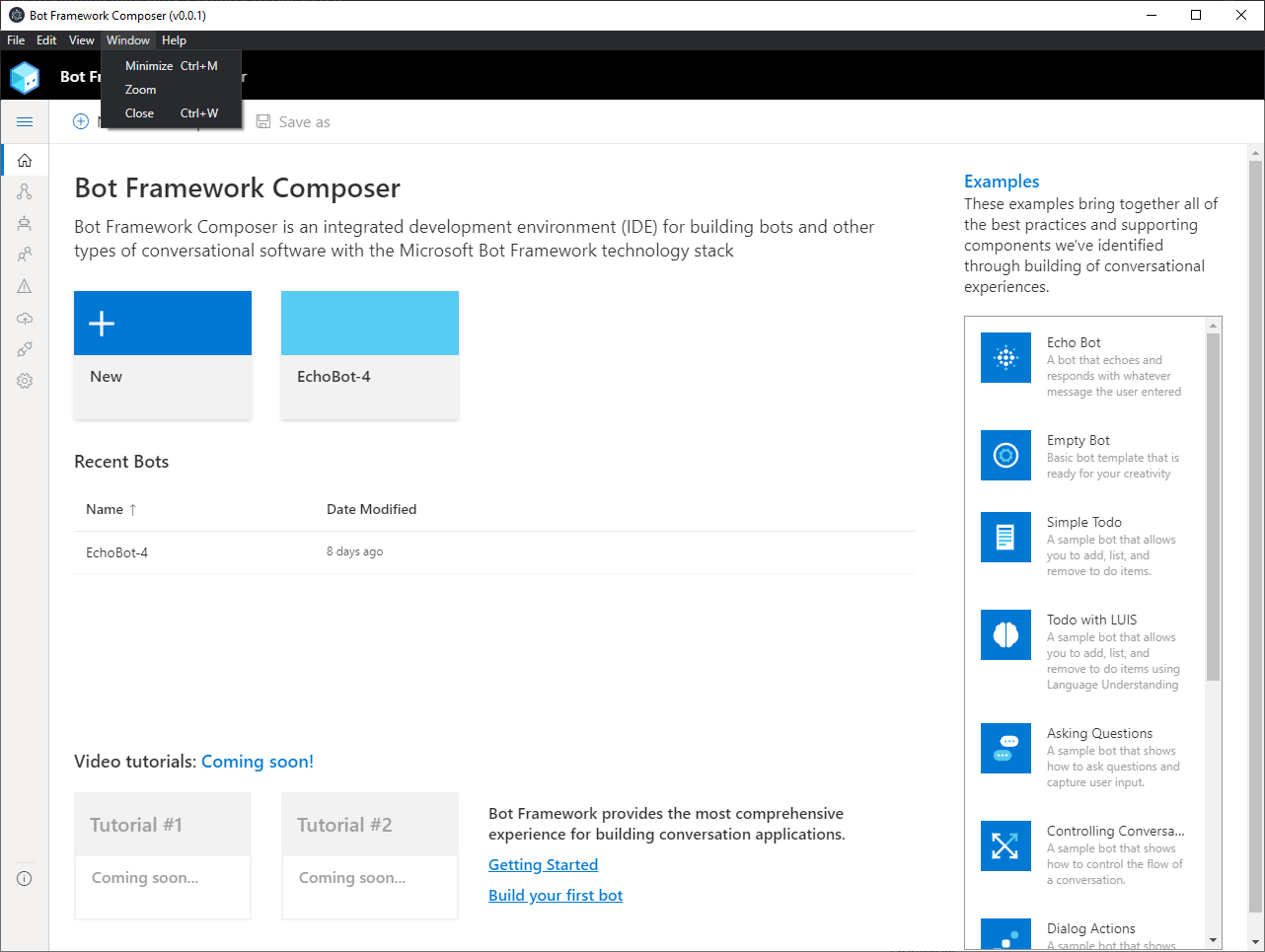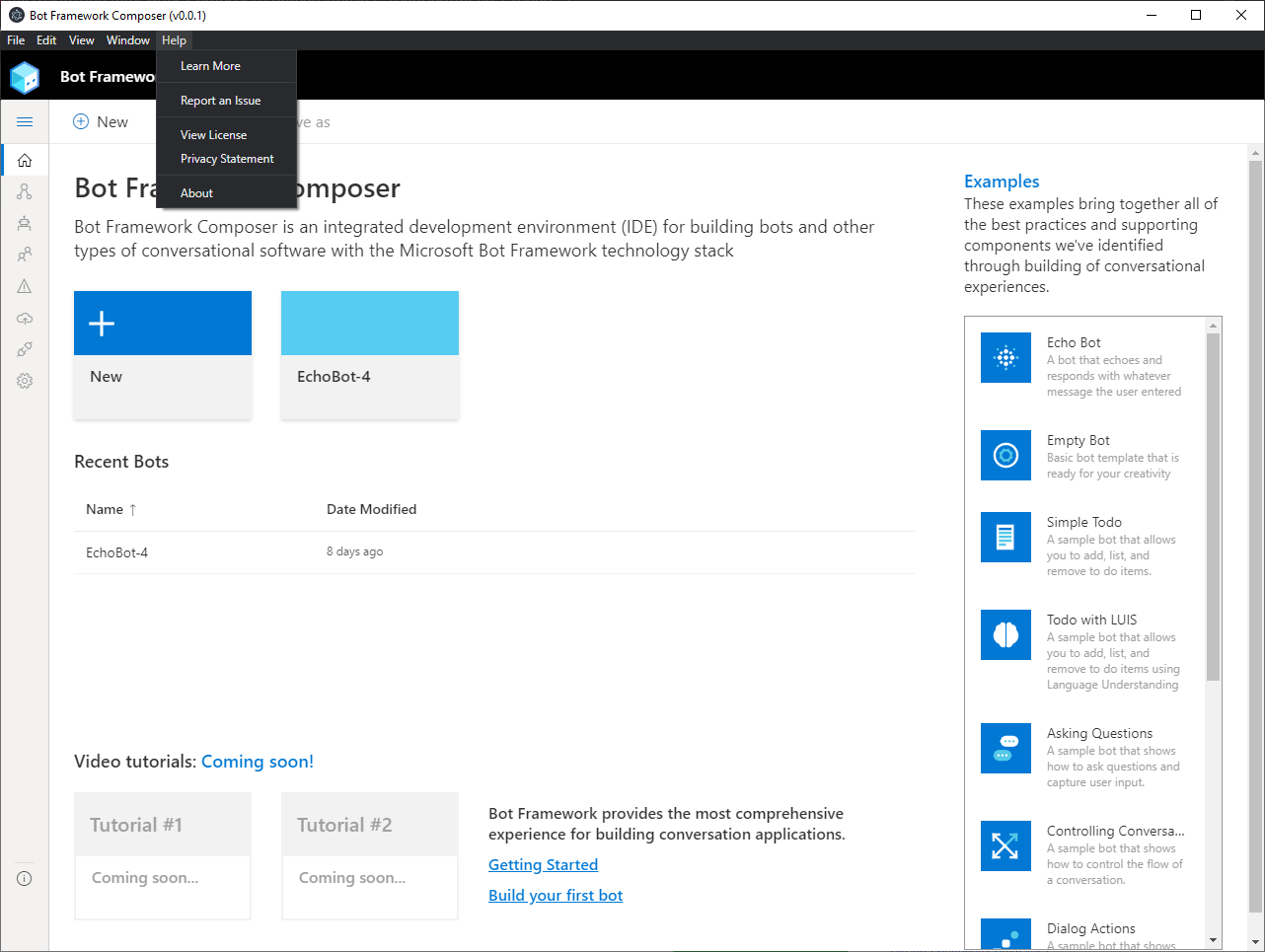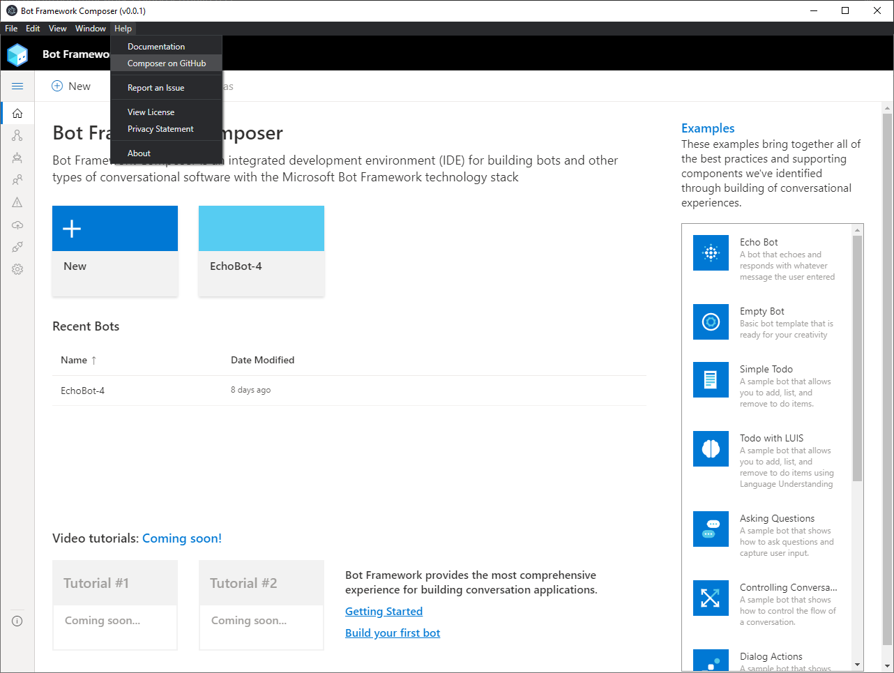 Things look good except for the Electron menu item. See attached. Can we clean this up? Can we also add a link in the help menu jumping out to the Composer docs? https://docs.microsoft.com/en-us/composer/ |