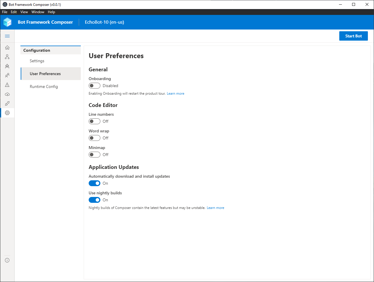 User Settings (Electron)