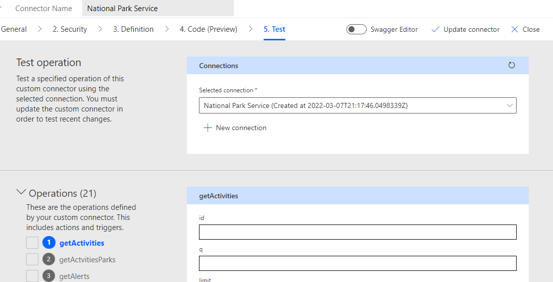 apiDefinition.swagger.json, by runningpaconn validatecommand.apiProperties.jsonhas a valid brand color and doesn't use an invalid brand color,#007ee5or#ffffff. If this is an independent publisher connector, I confirm that I am not submitting a connector icon.If you are an Independent Publisher, you must also attest to the following to ensure a smooth publishing process: