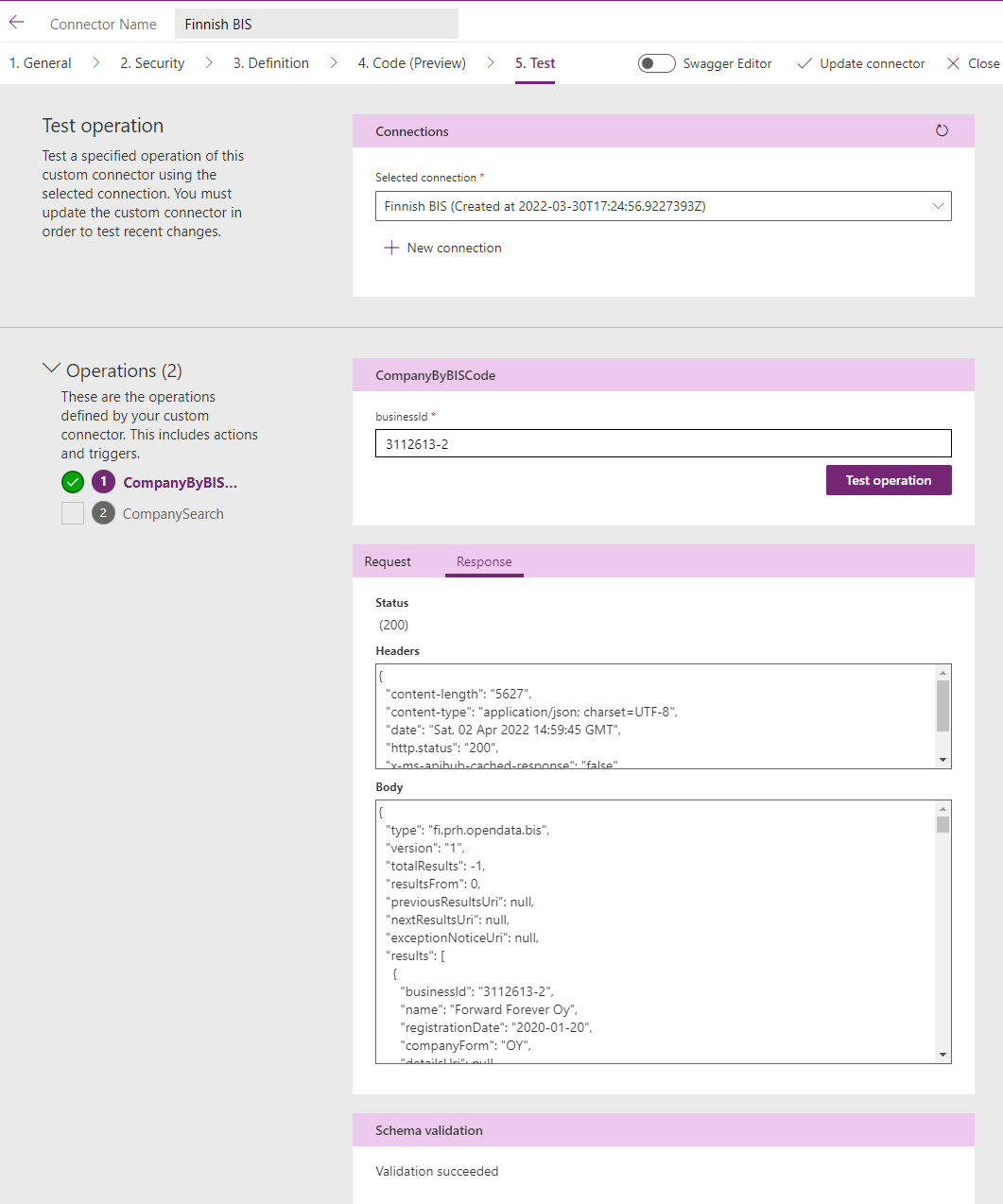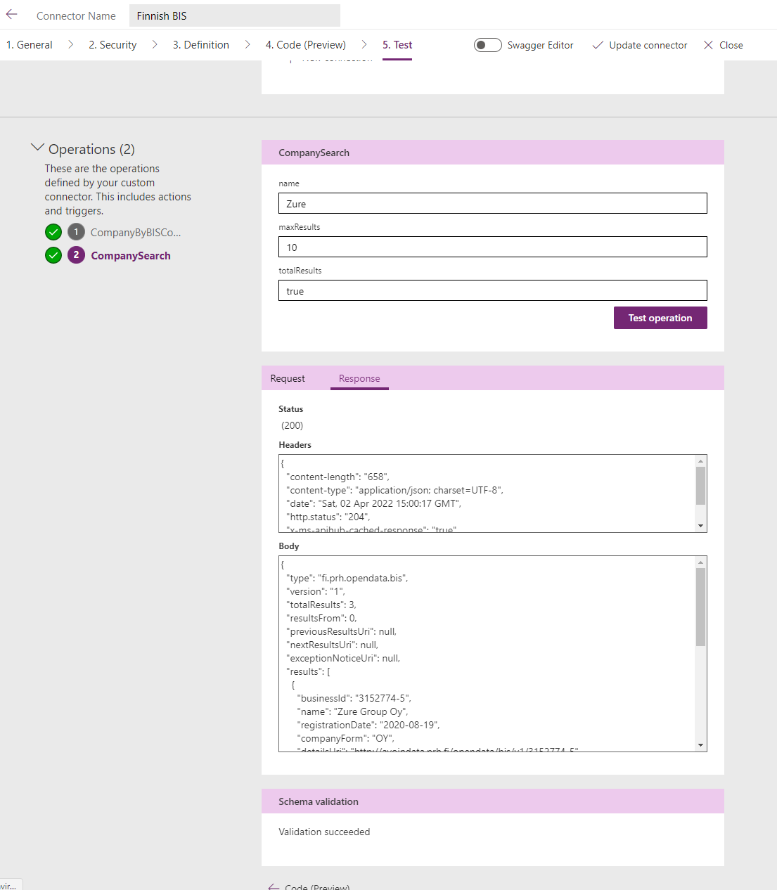 apiDefinition.swagger.json, by runningpaconn validatecommand.apiProperties.jsonhas a valid brand color and doesn't use an invalid brand color,#007ee5or#ffffff. If this is an independent publisher connector, I confirm that I am not submitting a connector icon.If you are an Independent Publisher, you must also attest to the following to ensure a smooth publishing process: