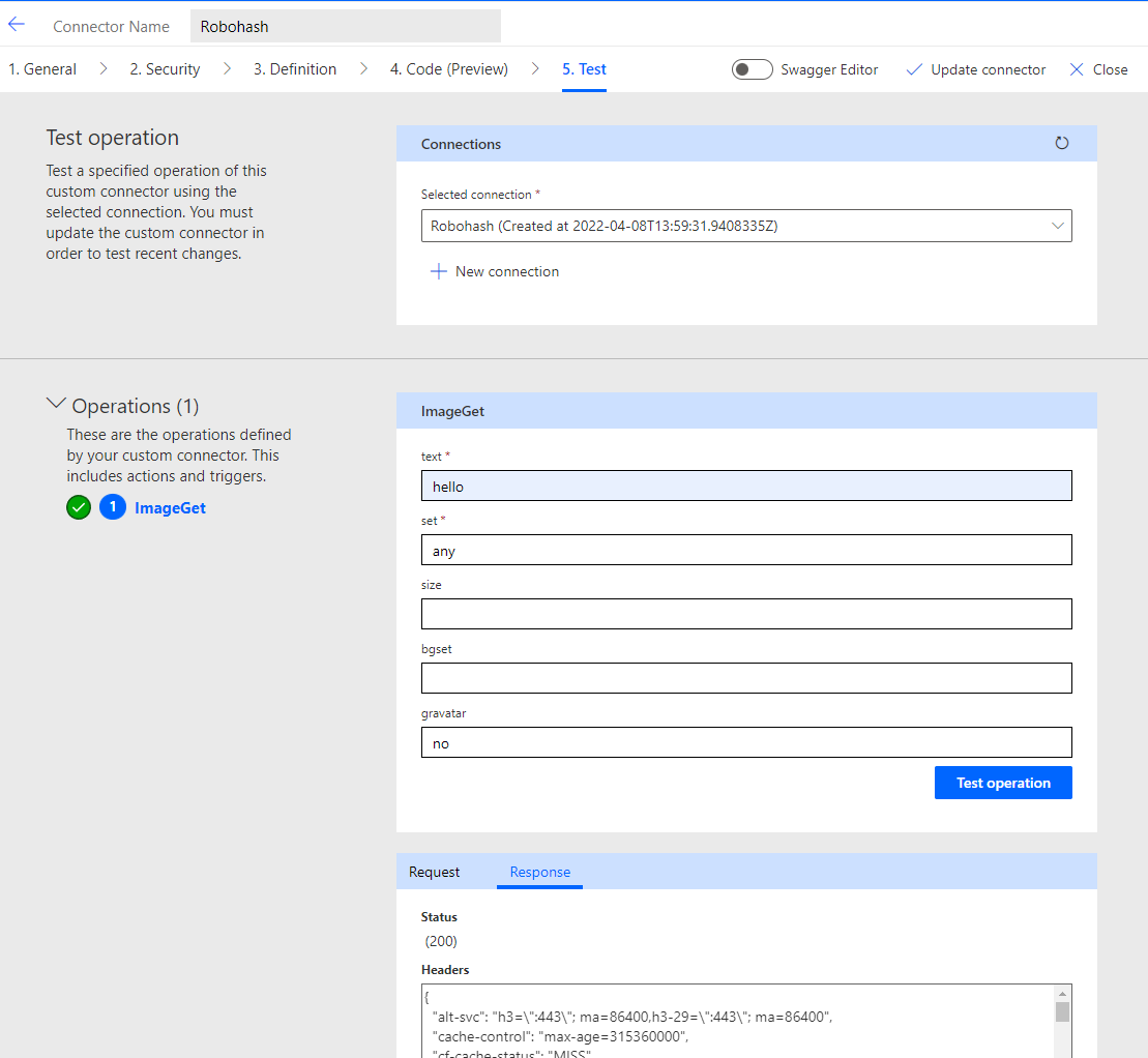 apiDefinition.swagger.json, by runningpaconn validatecommand.apiProperties.jsonhas a valid brand color and doesn't use an invalid brand color,#007ee5or#ffffff. If this is an independent publisher connector, I confirm that I am not submitting a connector icon.If you are an Independent Publisher, you must also attest to the following to ensure a smooth publishing process: