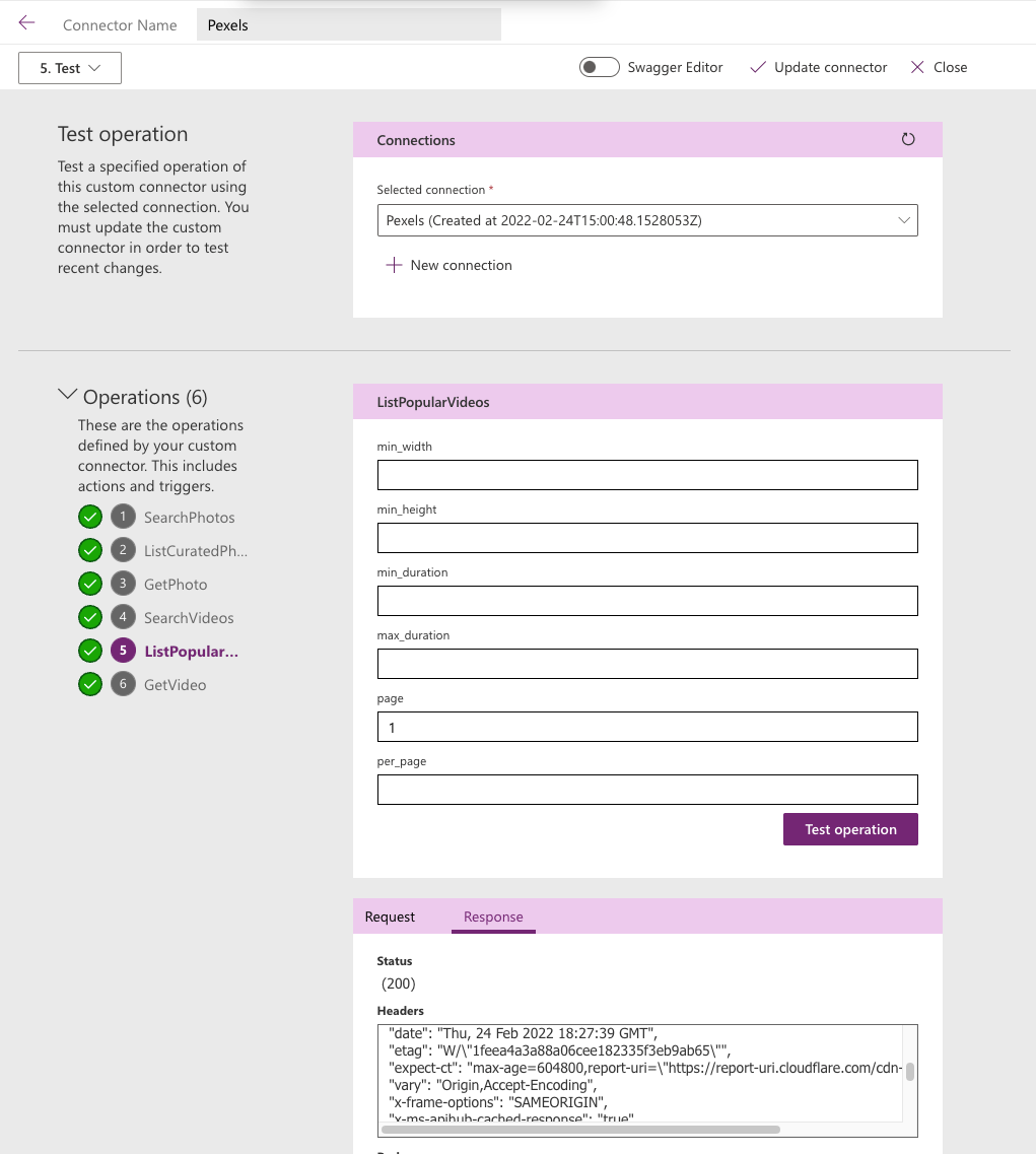 apiDefinition.swagger.json, by runningpaconn validatecommand.apiProperties.jsonhas a valid brand color and doesn't use an invalid brand color,#007ee5or#ffffff. If this is an independent publisher connector, I confirm that I am not submitting a connector icon.If you are an Independent Publisher, you must also attest to the following to ensure a smooth publishing process: