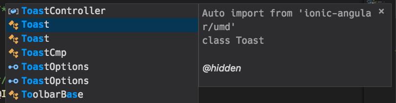 The auto import seems to import from ionic-angular/umd which has ionic-angular/umd/index.d.ts
