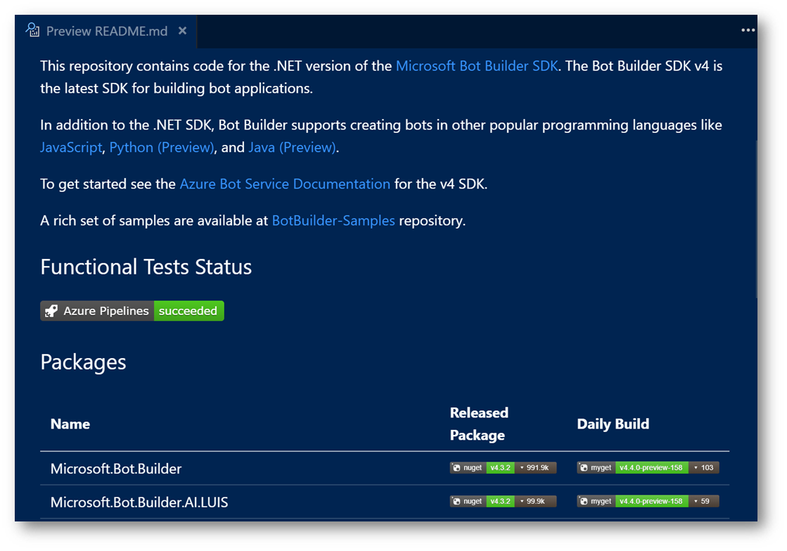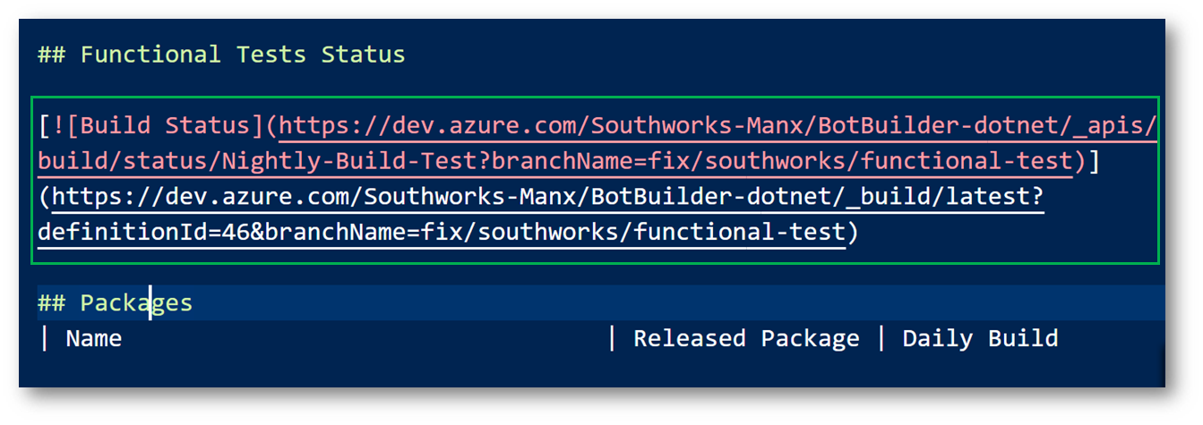 Add a Badge in the Readme file with the status of the build and execution of the Functional Tests as part of the Nightly Build Pipeline.