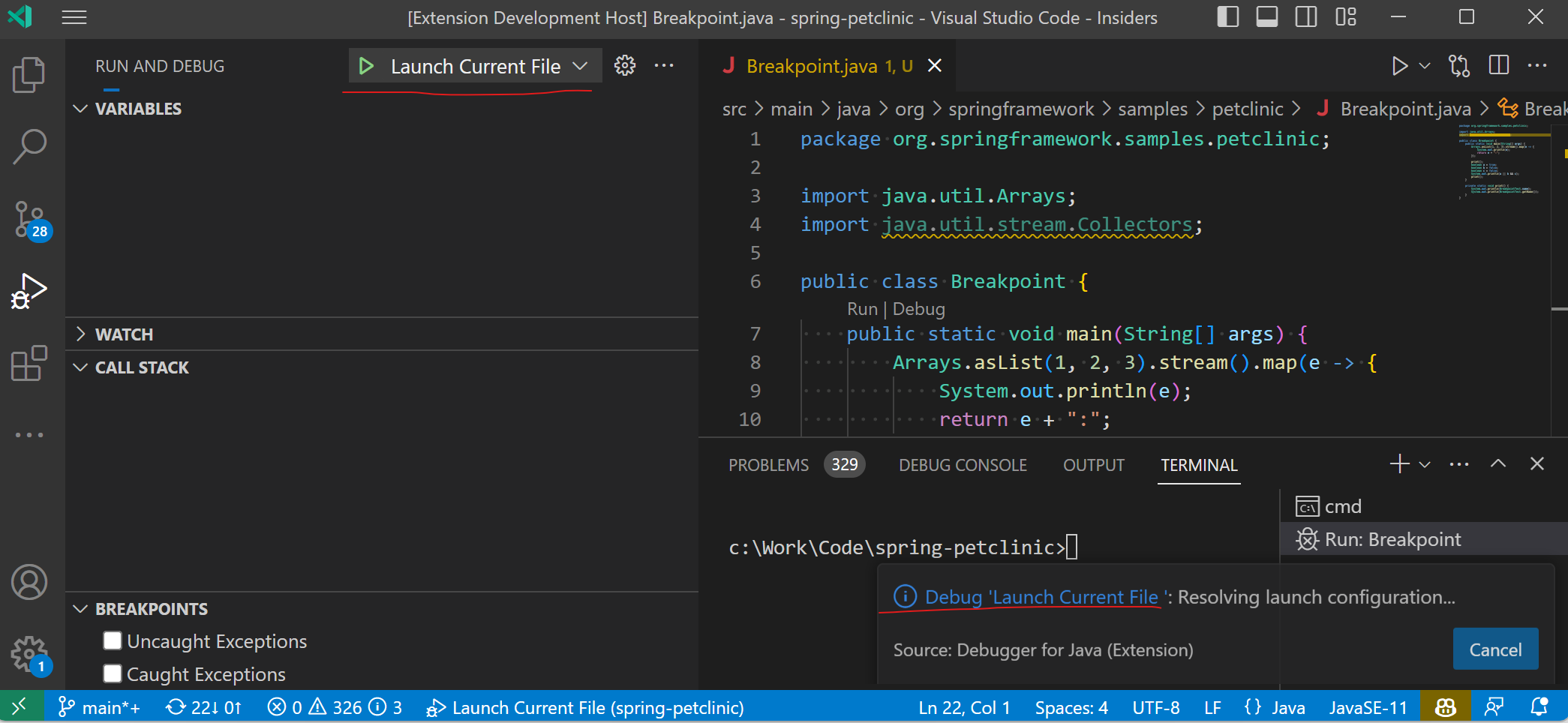 Now: (It uses the running application or launch config name in notification.)