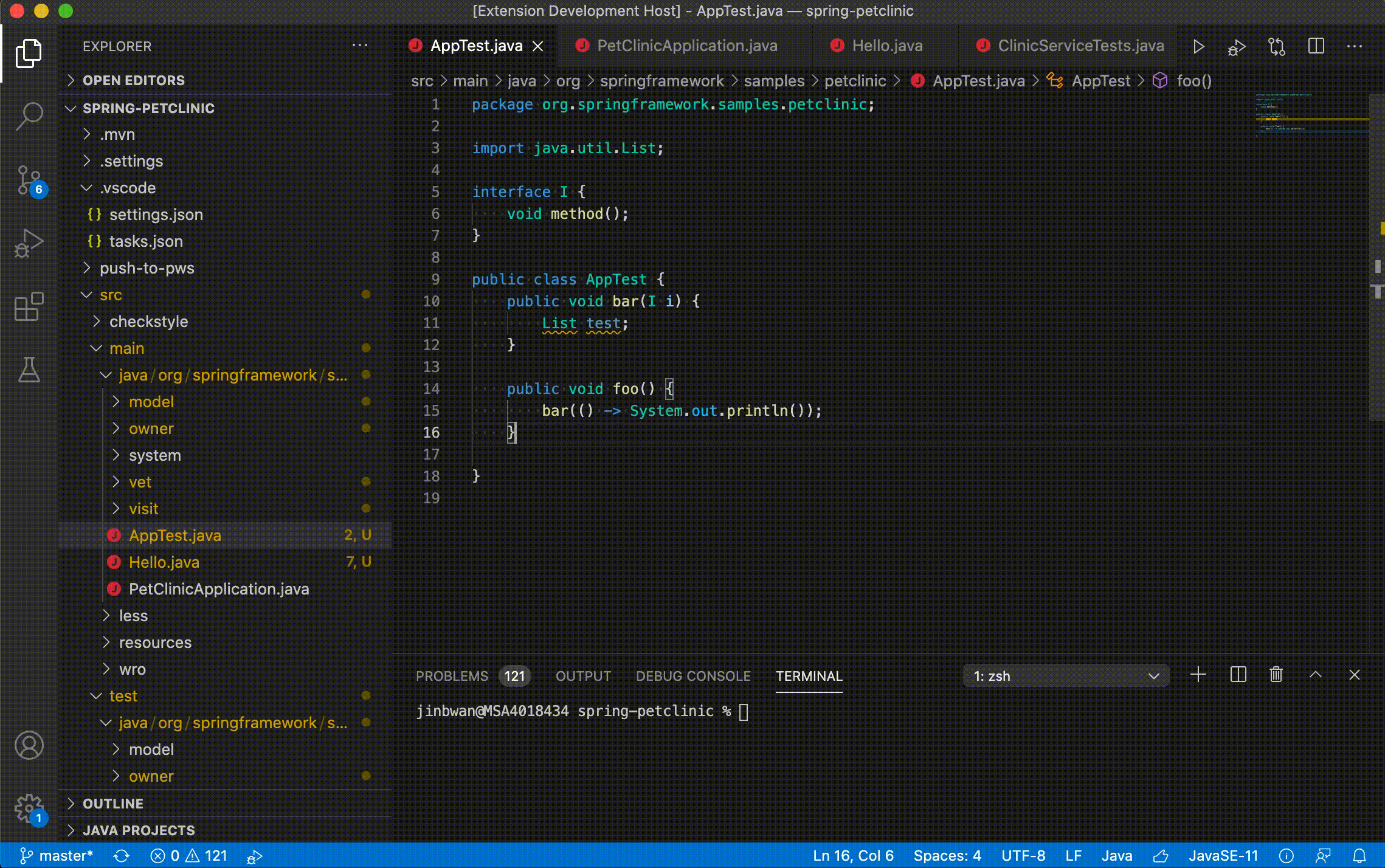 A private vsix to test the progress reporter feature. https://github.com/testforstephen/vscode-test/blob/master/vscode-java-debug-0.29.1.vsix Below is a sample to show the progress reporter such as resolving main class, compiling workspace, resolving launch configuration. |