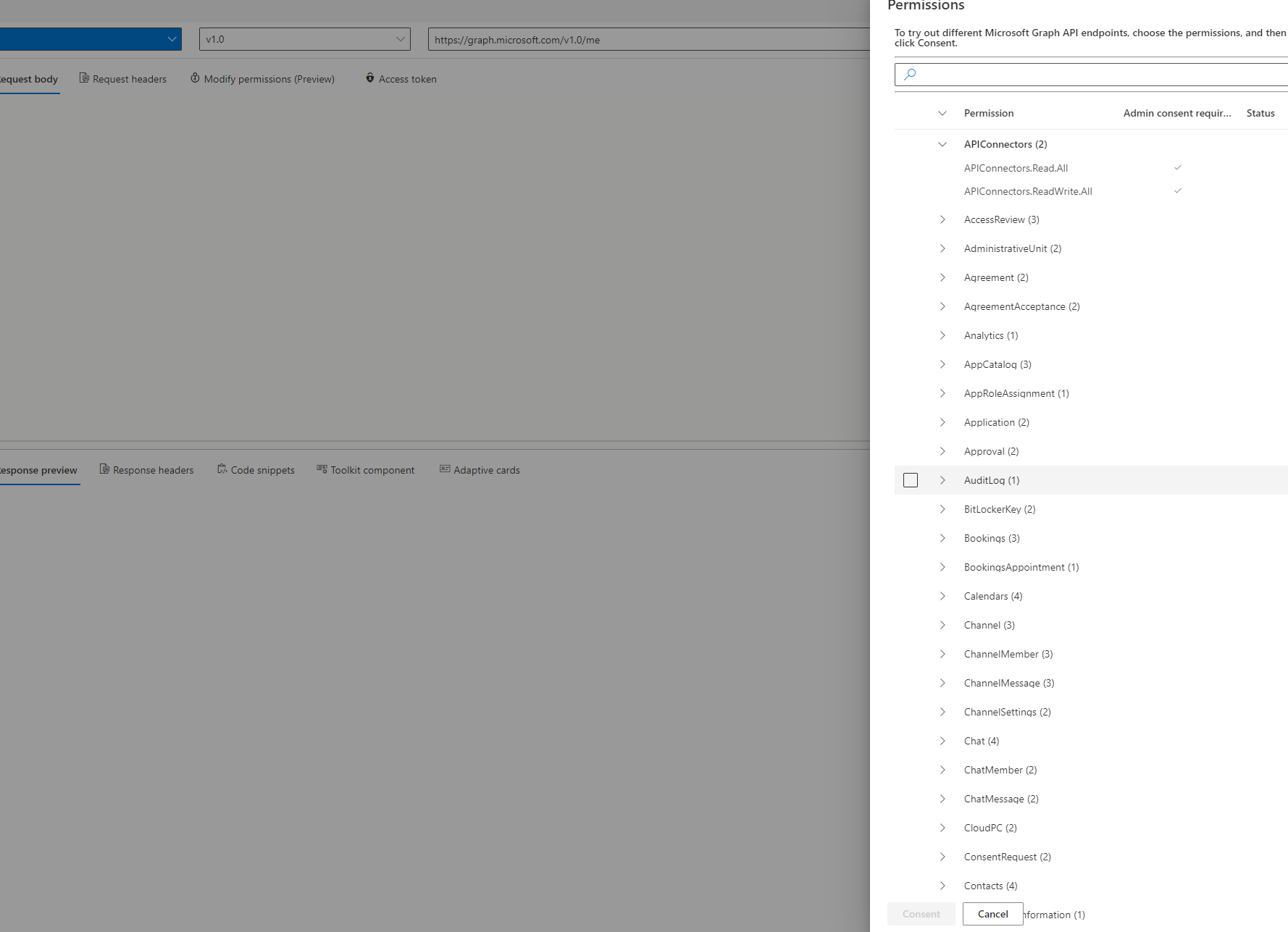 * Show information about CORS policy if query fails due to CORS restrictions (#1318) Remove CORS workaround and point users to documentation instead * chore/handover-translations-202112102137 (#1311) * Add PowerShell snippets tab (#1273) * Add PowerShell code snippets tab * Update API endpoint for fetching PowerShell snippets * Enable PowerShell code snippets syntax highlighting * Update from microsoftgraph/microsoft-graph-devx-content@a416962 (#1312) Co-authored-by: content-assistant <67429574+content-assistant[bot]@users.noreply.github.com> Co-authored-by: Elinor <ekaguongo@gmail.com> * Update from microsoftgraph/microsoft-graph-devx-content@8cec687 (#1313) Co-authored-by: content-assistant <67429574+content-assistant[bot]@users.noreply.github.com> Co-authored-by: Elinor <ekaguongo@gmail.com> * chore/handover-translations-202112132250 (#1317) * Merge January 2022 release into dev (#1345) * chore(release): 4.16.0 * Update azure-pipelines.yml for Azure Pipelines * Add resource explorer telemetry (#1347) * capture resource explorer telemetry Co-authored-by: Charles Wahome <thewahome.cw@gmail.com> * Fix: Expand/Collapse button on Response Preview editor (#1349) * update moaco package * update editor settings * disable unique landmark rule * show expand/collapse controls * remove header from resource context menu (#1337) * remove header from context menu * fix code smell * chore/handover-translations-202201141637 (#1352) * Update from microsoftgraph/microsoft-graph-devx-content@f3ea453 * Update GE_de-DE.json * Update GE_es-ES.json * Update GE_ru-RU.json * Update GE_zh-CN.json Co-authored-by: content-assistant <67429574+content-assistant[bot]@users.noreply.github.com> Co-authored-by: Millicent Achieng <achieng.milli@gmail.com> * Adds ability to add functions to collections (#1348) * adds ability to add functions to collections * Fixes preview collection button (#1350) * add a custom button * fix commandbar background * restore resources tab for review * refactor styles to a .styles file * remove resources tab * chore/handover-translations-202201181914 (#1355) * Removes 'Access Query Parameters' from the resources' context menu (#1338) * remov 'Access Query Params' from context menu * restore resources tab for review * remove unused enum type * remove unused code on the ResourceExplorer file * Task: Update dependencies (#1356) * Chore(deps): Bump style-loader from 0.23.1 to 2.0.0 (#1283) * Chore(deps): Bump babel-loader from 8.2.2 to 8.2.3 (#1285) * Chore(deps-dev): Bump node-fetch from 2.6.1 to 3.1.0 (#1286) * Chore(deps-dev): Bump @typescript-eslint/eslint-plugin from 4.15.0 to 4.33.0 (#1287) * Chore(deps): Bump typescript from 4.1.5 to 4.5.4 * update package dependencies * add variable types * remove added caret * Chore(deps-dev): Bump color-string from 1.6.0 to 1.9.0 (#1342) * Chore(deps-dev): Bump selenium-webdriver from 4.0.0-beta.4 to 4.1.1 (#1343) * Chore(deps): Bump follow-redirects from 1.14.1 to 1.14.7 (#1354) * update packages * update dependencies * add status message to history item (#1364) * Fix: disable link highlighting (#1358) * expand and collapse resource links on selection * remove vertical outline from resource links * Fix version validation for autocomplete (#1357) * Remove extra slashes in the query sanitization process * Only fetch autocomplete suggestions if version is valid * Add warning for user if version specified for query is invalid * Fix: Enable focus to remain on copy button when clicked (#1379) * add focus function to copy buttons * remove closing dialog function * Fix: Add aria-label for items in the sample queries tab (#1378) * Add ariaLabel * change to lowercase * Update from microsoftgraph/microsoft-graph-devx-content@4a246ee (#1384) Co-authored-by: content-assistant <67429574+content-assistant[bot]@users.noreply.github.com> * chore/handover-translations-202201301912 * Fix: Query input 'i' icon focus (#1377) * change Icon to button * localize string * Update user profile info if they use a different account to consent to permissions (#1380) * Update documentation link icon (#1390) * Update documentation link icon * Use theme color for documentation link icon * Fix: Text overflowing on feedback and access token tabs (#1382) * Show Resource Explorer HTTP methods next to resource (#1367) * Display HTTP methods in Resource Explorer like they are shown in Samples Queries * Show functions on resource explorer tree at the top * Update Postman collection preview * Enable resource explorer tab * Organise Postman collection into resource groups instead of having one long list and improve names of endpoints * Add ResourceLinkType enum * Set query on clicking list item * change pivot items order (#1407) * Hide resources tab (#1408) * Fix copy button on response headers (#1409) Co-authored-by: Millicent Achieng <achieng.milli@gmail.com> * Fix: Appearing/Disappearing popup (#1418) * remove ocps token call * retuen ocps call * remove getPolicies dispatch * hide feedback button * dsiable pop up if user is AAD * Fix: Selectively disable HTTP cache for failing anonymous fetch calls (#1391) * temporarily disable Http cache for failing anonymous GET calls * selectively add cache headers before fetch * fix failing test * chore/handover-translations-202202041836 (#1425) * Update from microsoftgraph/microsoft-graph-devx-content@dabcdcf * chore/handover-translations-202202061812 (#1428) * Update from microsoftgraph/microsoft-graph-devx-content@a9f2f50 Co-authored-by: content-assistant <67429574+content-assistant[bot]@users.noreply.github.com> * chore/handover-translations-202202071552 (#1430) * Update from microsoftgraph/microsoft-graph-devx-content@bff58f2 Co-authored-by: content-assistant <67429574+content-assistant[bot]@users.noreply.github.com> * Release: February 2022 (#1447) * chore(release): 4.16.2 * Fix: hanging run query button (#1445) * Fix: Narrator announces Tab items activation (#1435) * add aria-controls to request pivots * add aria-controls on respopnse pivots * 