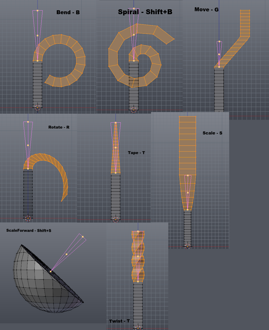 This tool allows to make basic deformations like bend/twist/tape. Pretty handy for modeling.