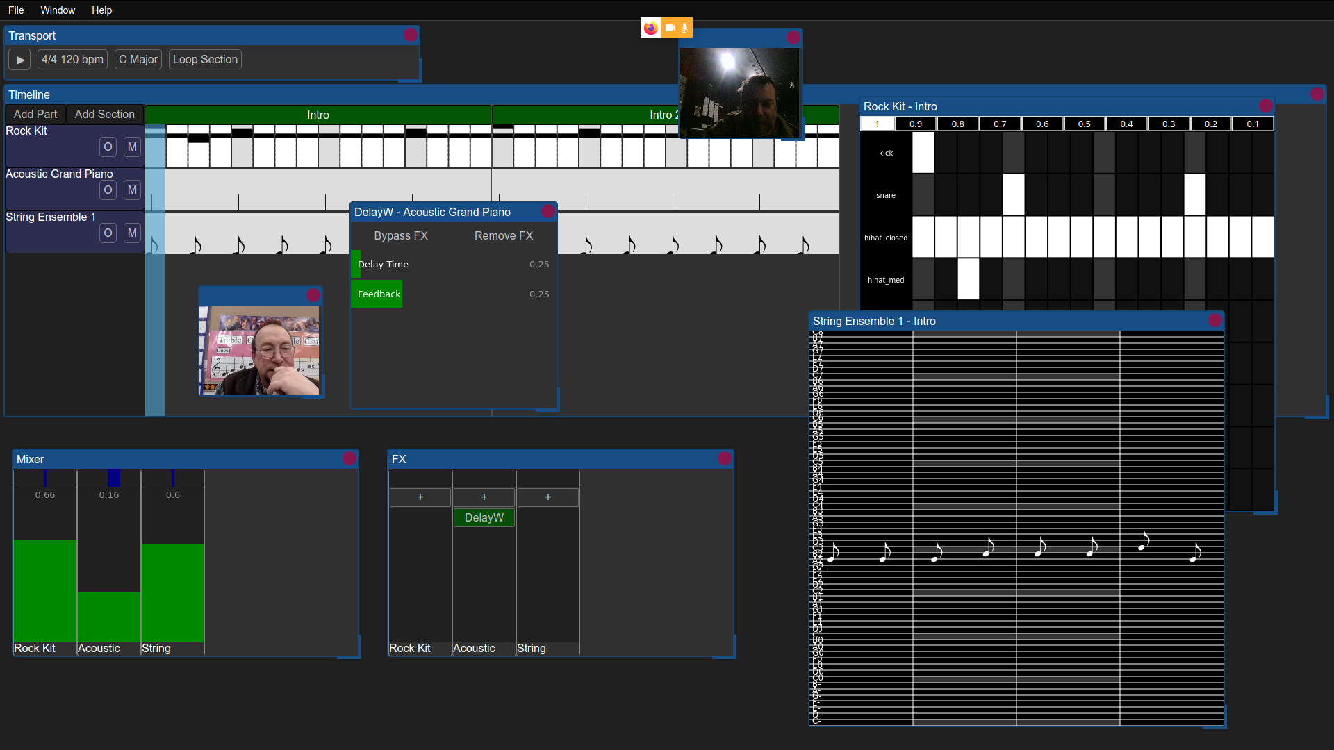 WebSockets are also used to connect local devices to the session as remote controls. Dawesome is touchscreen guitar compatible.