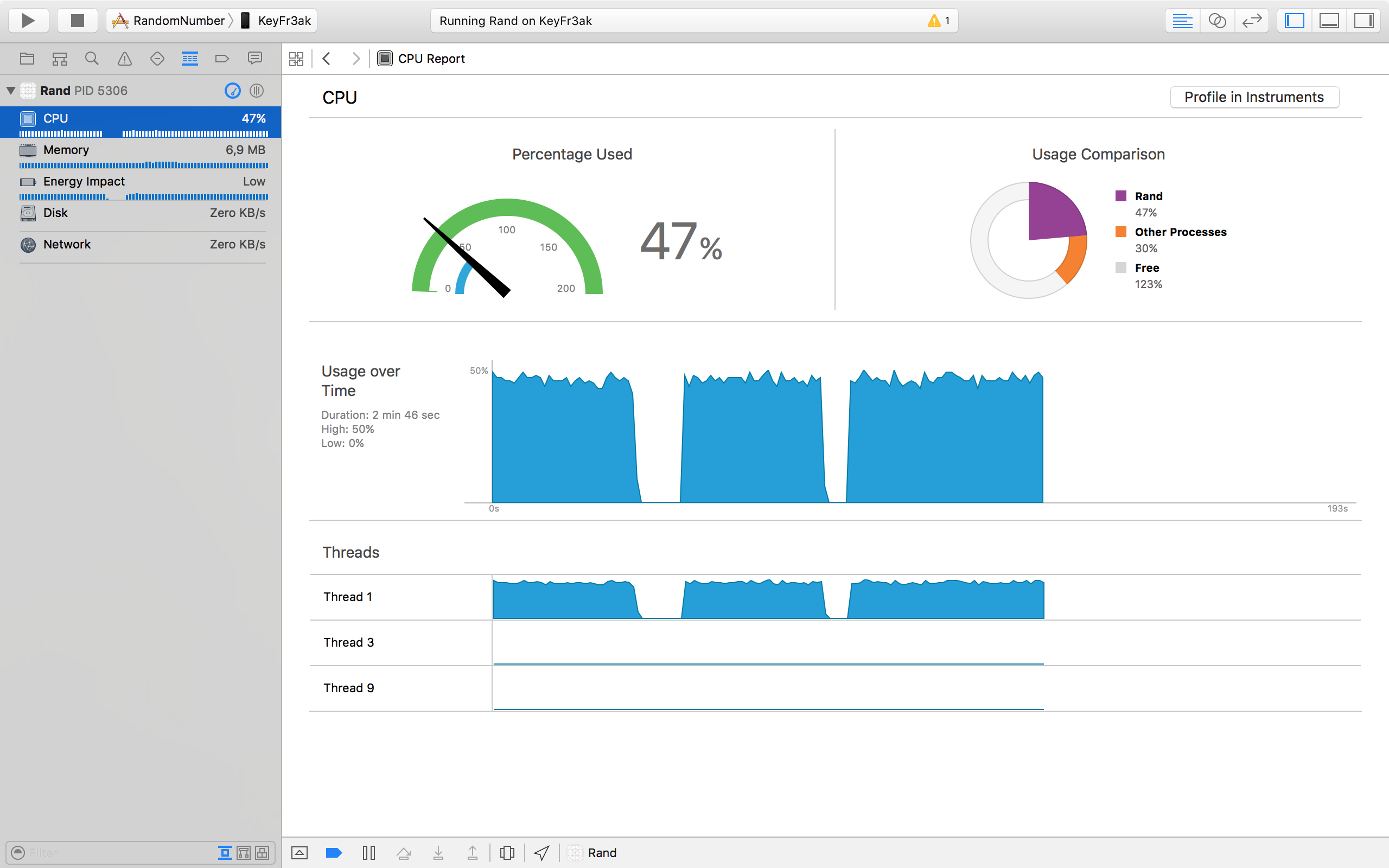 Rand is a simple iOS application that calculates a 20 digit random number. It is completely built in Swift so it is lightweight and features two buttons, a START and a STOP button, that until now worked flawlessly.