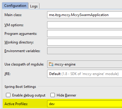 This page describes the specific Spring profiles interpreted by the MCCY application code. Refer to this page to see how to activate the profiles listed below.