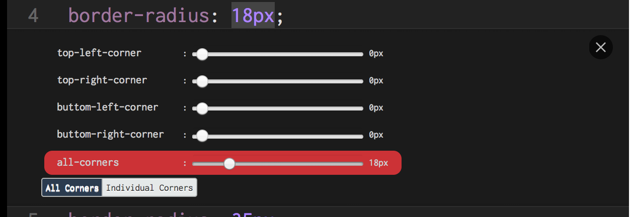Hey @feihaozi77, when opening a single-value border-radius, is it possible to also populate that value into all of the corner values? See the screencap below, when I open it, all of the values are set to 0... |