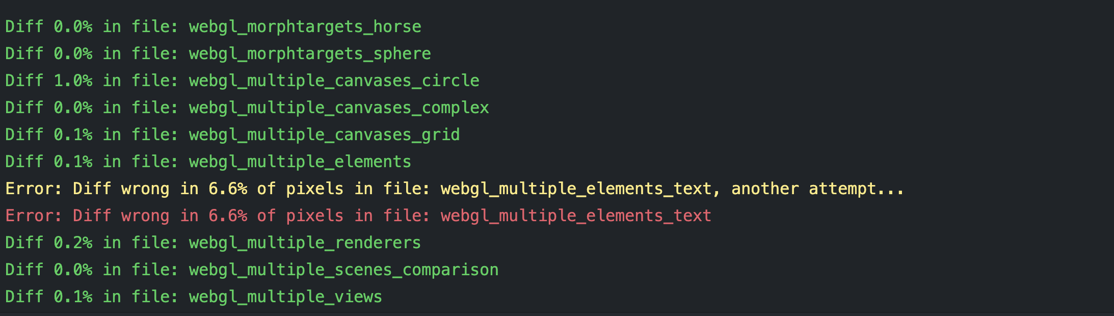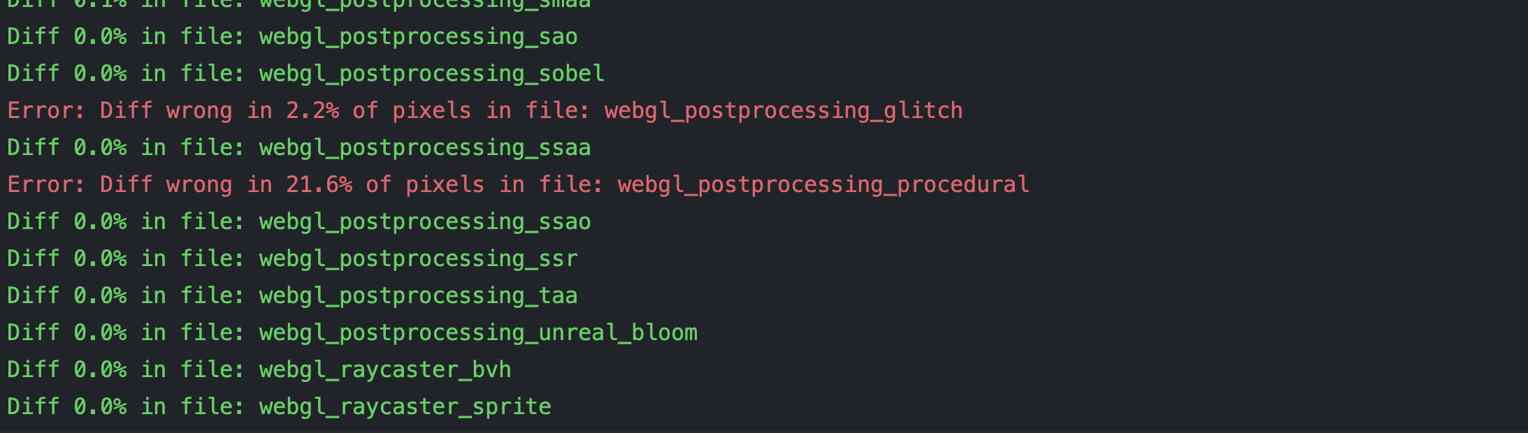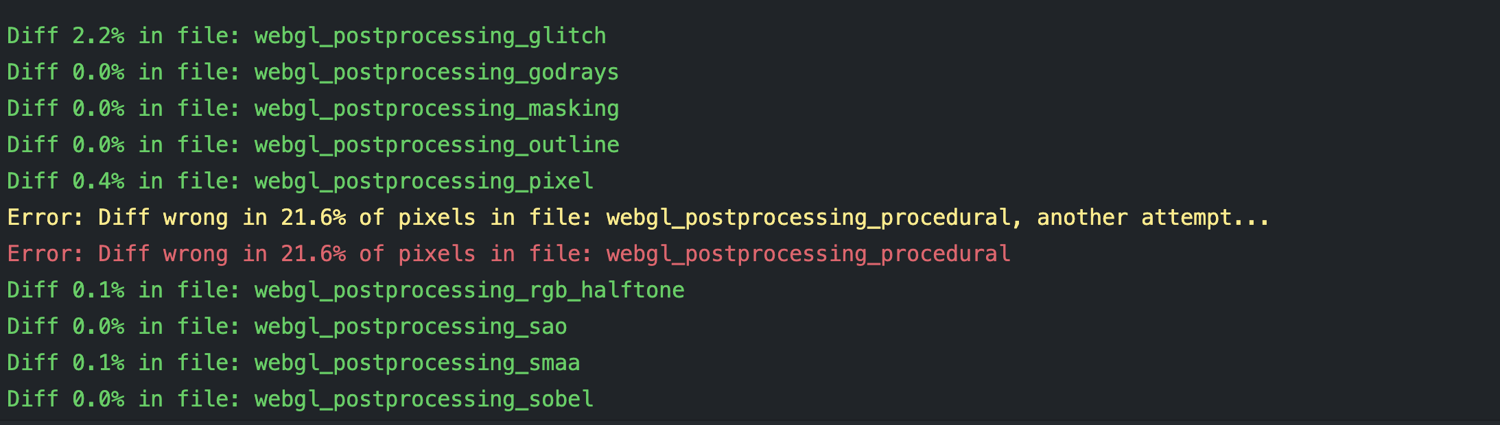Next test is all 3. Vulkan won't have much supports on the Macs. Updating this comment with the results. It's at least completing but now we have 5 errors instead of 2. Results Summary: Error Captures: |