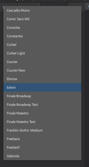 the current font selection dropdown looks like this -