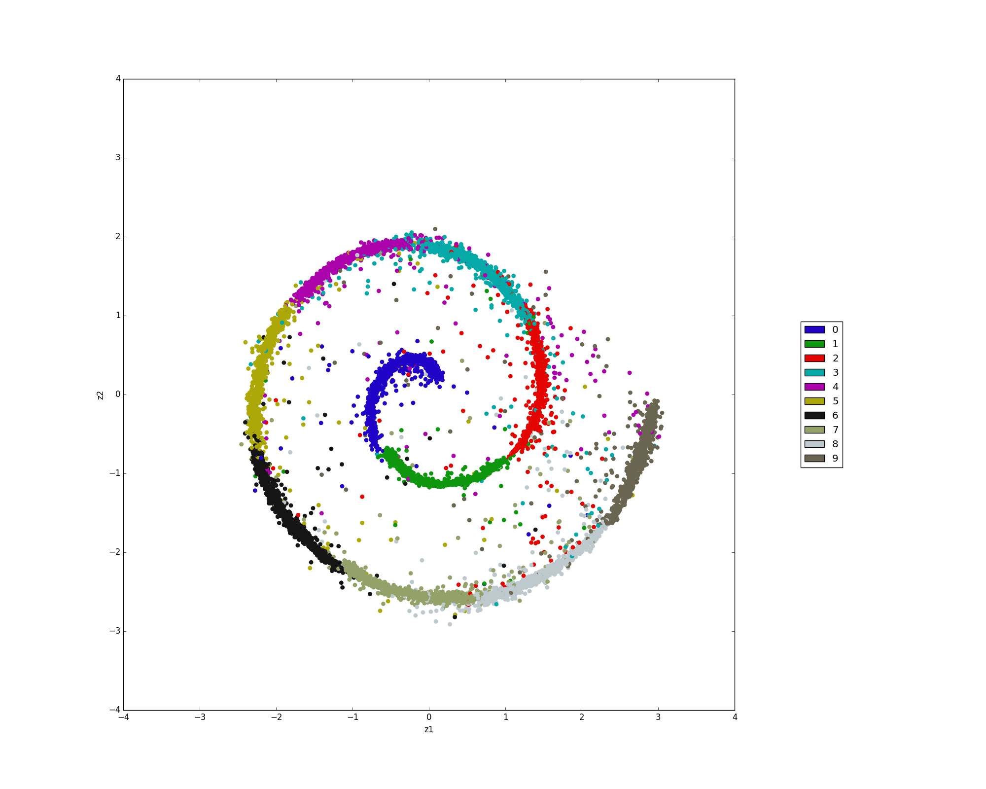 We trained with a prior (a mixture of 10 2-D Gaussians or Swissroll distribution) on 10K labeled MNIST examples and 40K unlabeled MNIST examples.