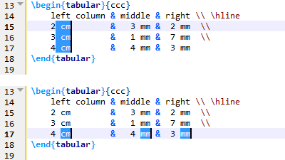 Edit multiple positions at the same time. Vertical blocks can even be copied and pasted.