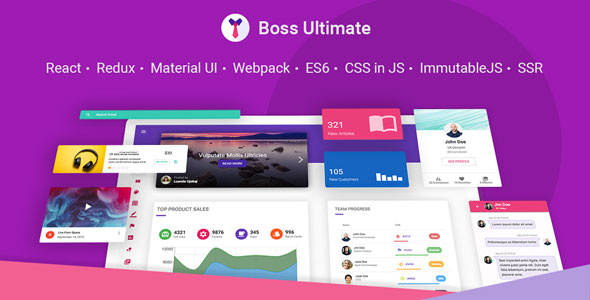 Boss Lite is admin dashboard template based on React and Redux. It provides you clean modern design and high performance react app with various color theme. This template has been built to makes the development process easy and fast for you, which is supported by material-ui v1.x, jss (css in js), immutable js, webpack, ssr (server side rendering), npm modern workflow and flexible layout with flexbox.