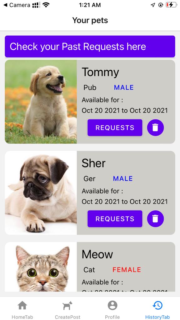 - review all you requests you recived to look after your pet by other pet lovers