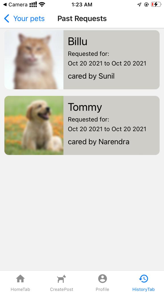 - post your pet details [pet photo , time till you want someone to take care , Location ... ]