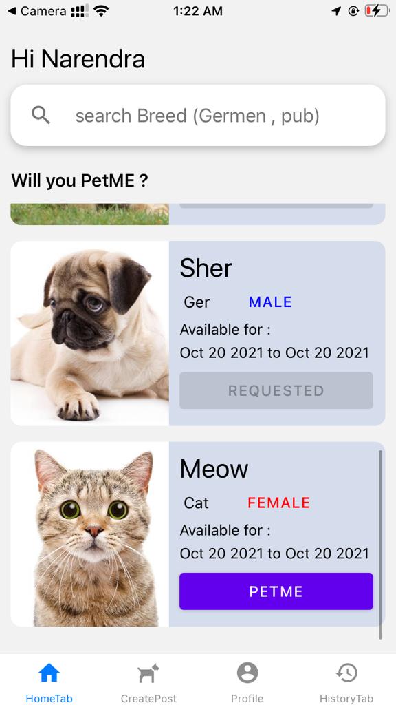 petMe is connection between --> need someone to take of their pet for temporary ? + want pet But can't keep them forever ?