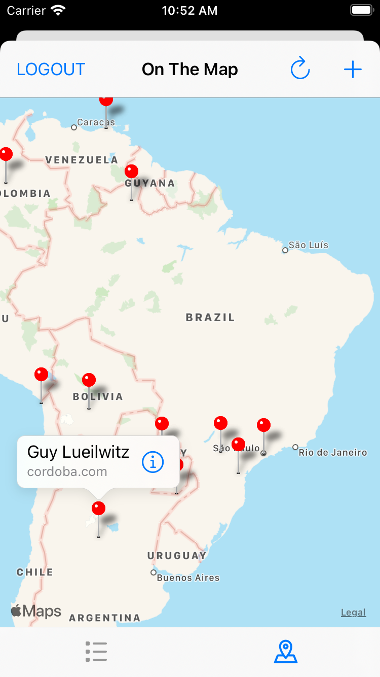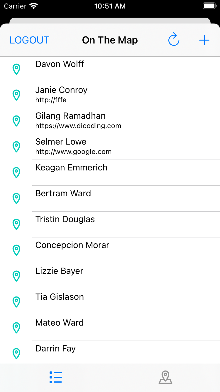 An app with a map that shows information posted by other students. The map will contain pins that show the location where other students have reported studying. By tapping on the pin users can see a URL for something the student finds interesting. The user will be able to add their own data by posting a string that can be reverse geocoded to a location, and a URL.