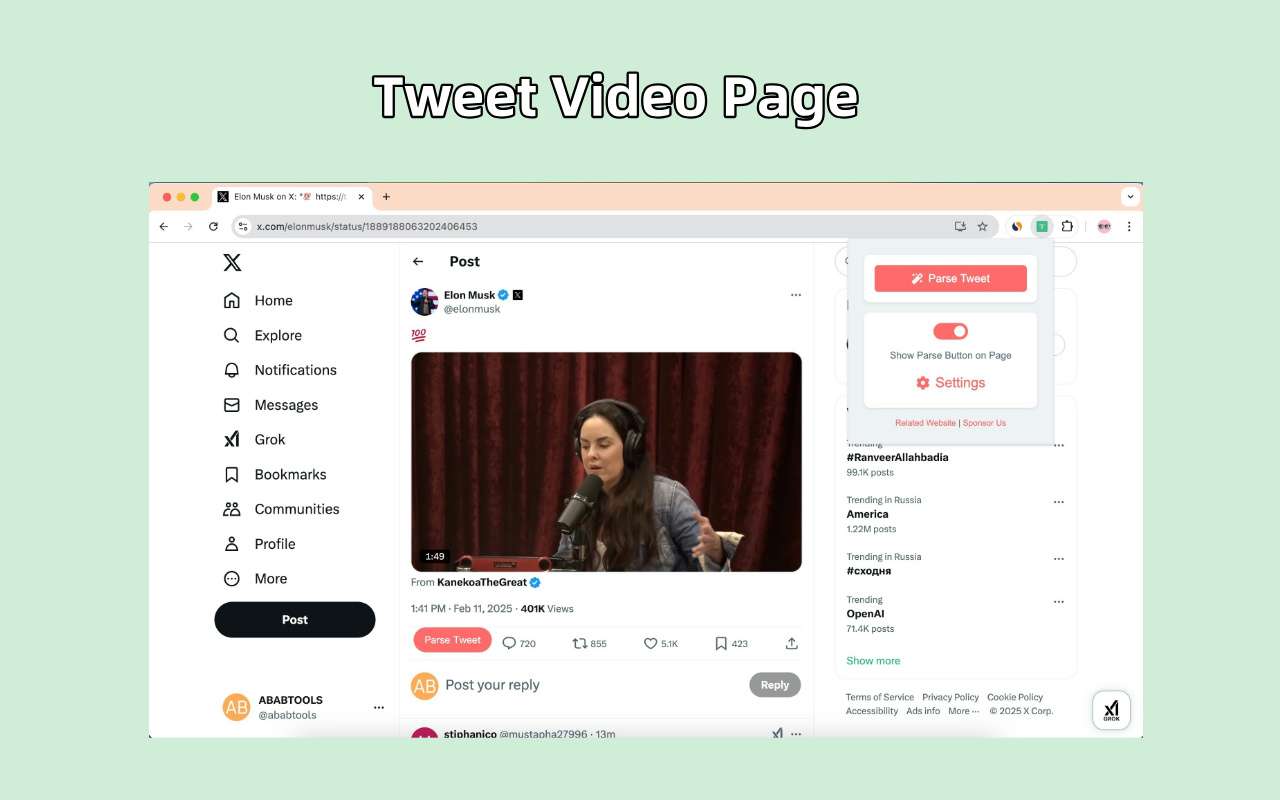 - 安装扩展后,访问任意 Twitter/X 视频页面。