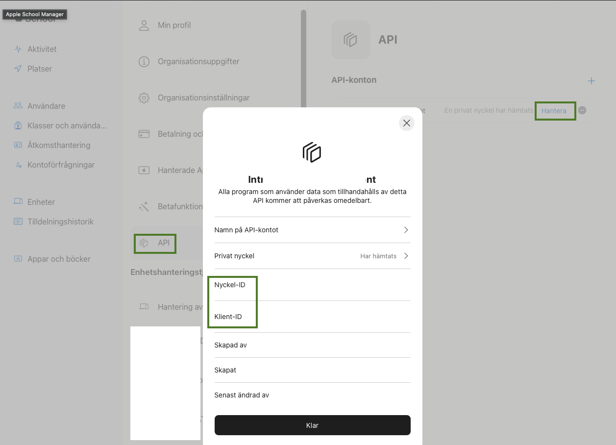 - The ABM/ASM configuration must be completed with correct client ID, key ID, and private key path.