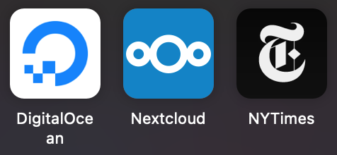 apple-touch-iconhave a resolution of 180px x 180px (the size of the DigitalOcean icon), though previously it was 144px x 144px (the size of the NYTimes icon). Firefox and Chrome on desktop seem to render icons at 192px x 192px, so it might actually be safer to default to that. Or something. The<link rel ...>tag can actually specify a large set of variations for a wide variety of circumstances.There are plenty of other mindnumbing subtleties to getting a favicon to render correctly in every possible circumstance, and I am getting my information from realfavicongenerator.net. Nextcloud could plausibly integrate the Real Favicon Generator API in order to cover all its bases, but that's kind of above my pay grade at the moment, lol.