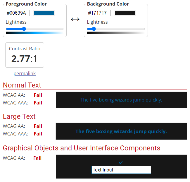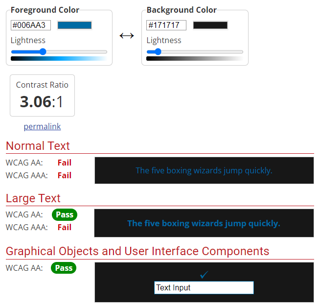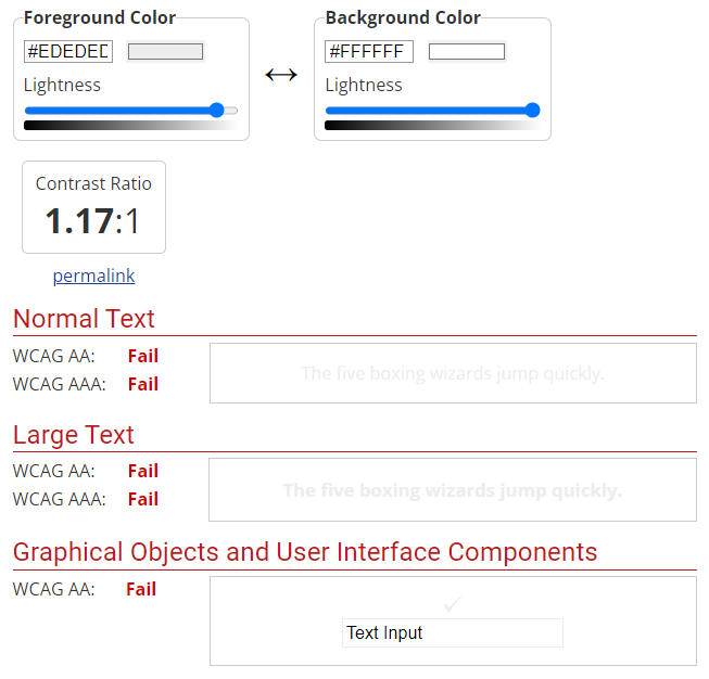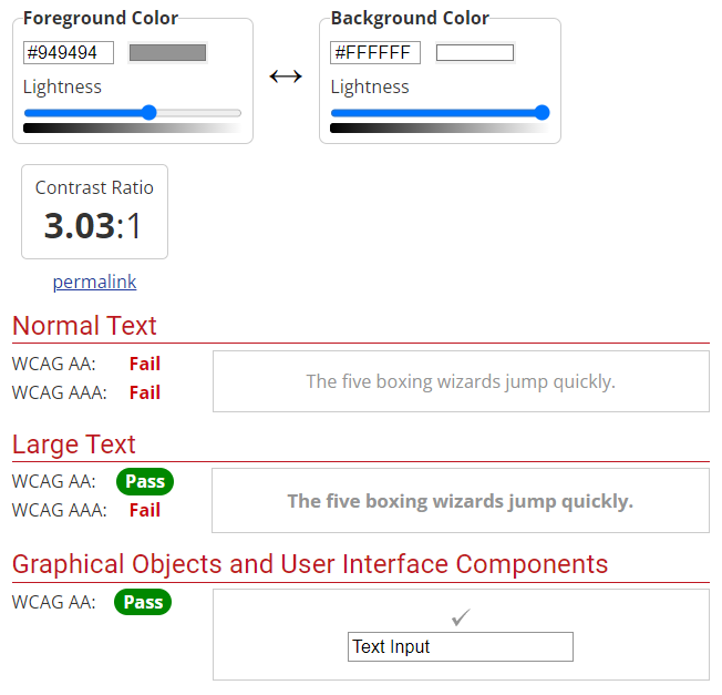 To meet WCAG AA contrast requirements for border colors, categorized under “Graphical Objects and User Interface Components”, a minimum 3:1 foreground-background contrast ratio is required