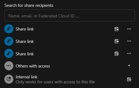 @Pytal the numbers only appear with the second link, right? So "Share link" will initially not have a number. Then I'm thinking it might be best to cut the " (1)" from the first one and only number from then on, just like we do for filenames. when copying files.