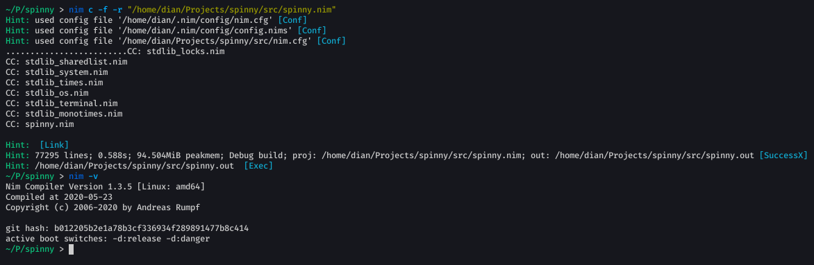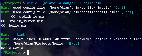 @timotheecour seems like it didn't help (no newline before first CC with no arguments, the nim.cfg just contains threads:on) |