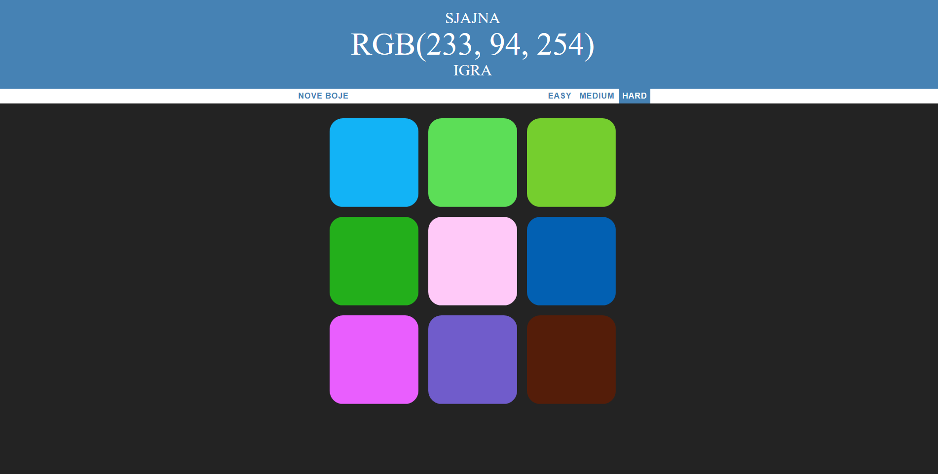 The title in the game and on the screenshot is in Serbian language and means "Great game" - around RGB numbers and next to easy, medium and hard it means "New colors"....