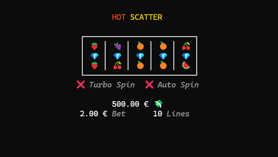 This project is a terminal adaptation of Amatic's "Hot Scatter" slot.