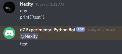 o7-Experimental-Python-Bot Hardened Python executor to avoid token leak, hijacking(nexity version) Try the bot out (Capture the Token (CTT)) Join this server > https://discord.gg/pcas and use the bot using python codes Prefix is epy Pwned Log Patch 5:
