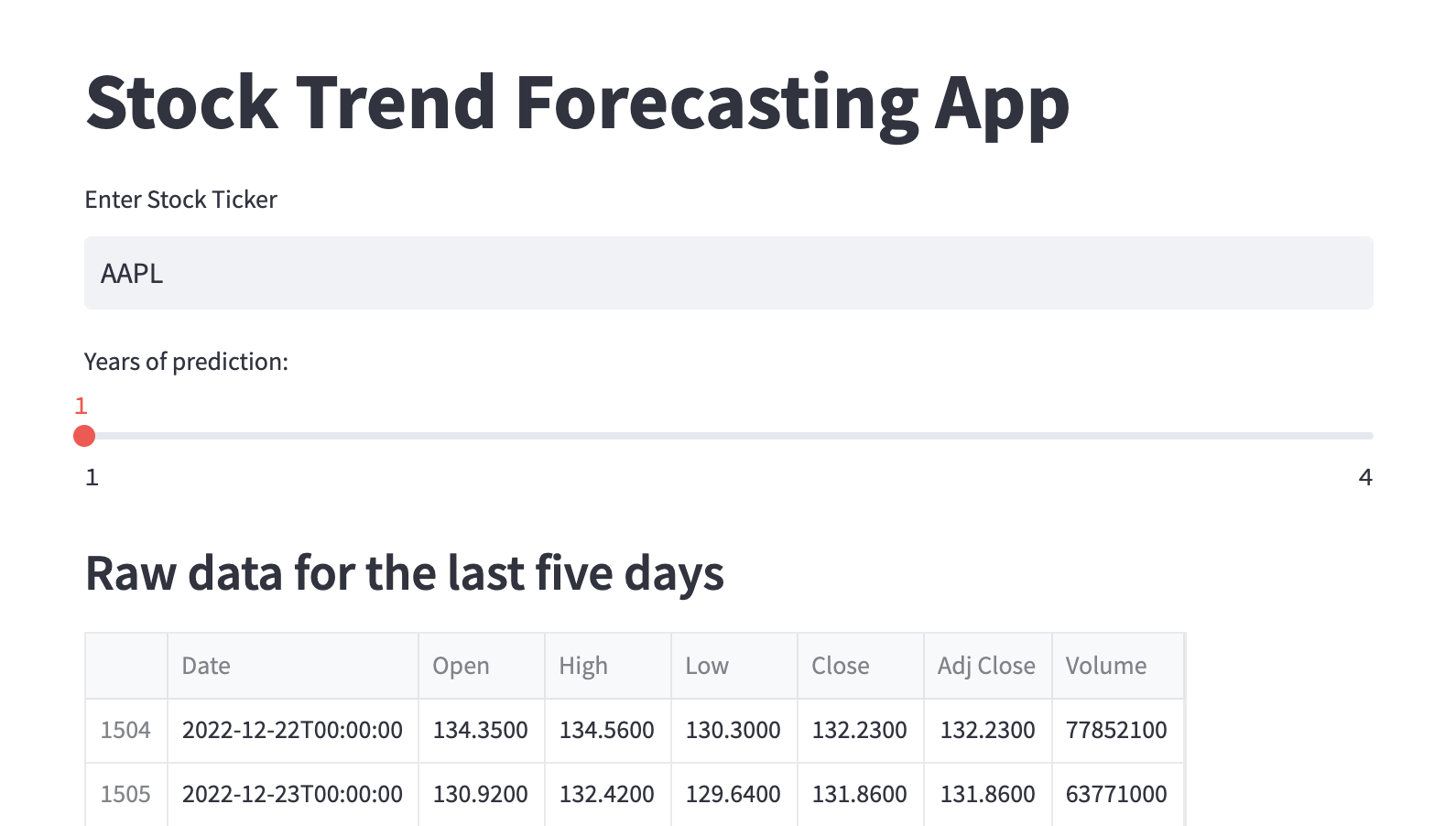 - See the trend of stock price from 2017-01-01 to current, when the user opens up