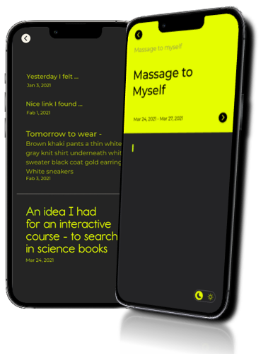 - This screen serves as a "Message to Myself" feature, where you can have a chat-like interface to communicate with yourself. It provides a space for self-reflection, reminders, and notes.