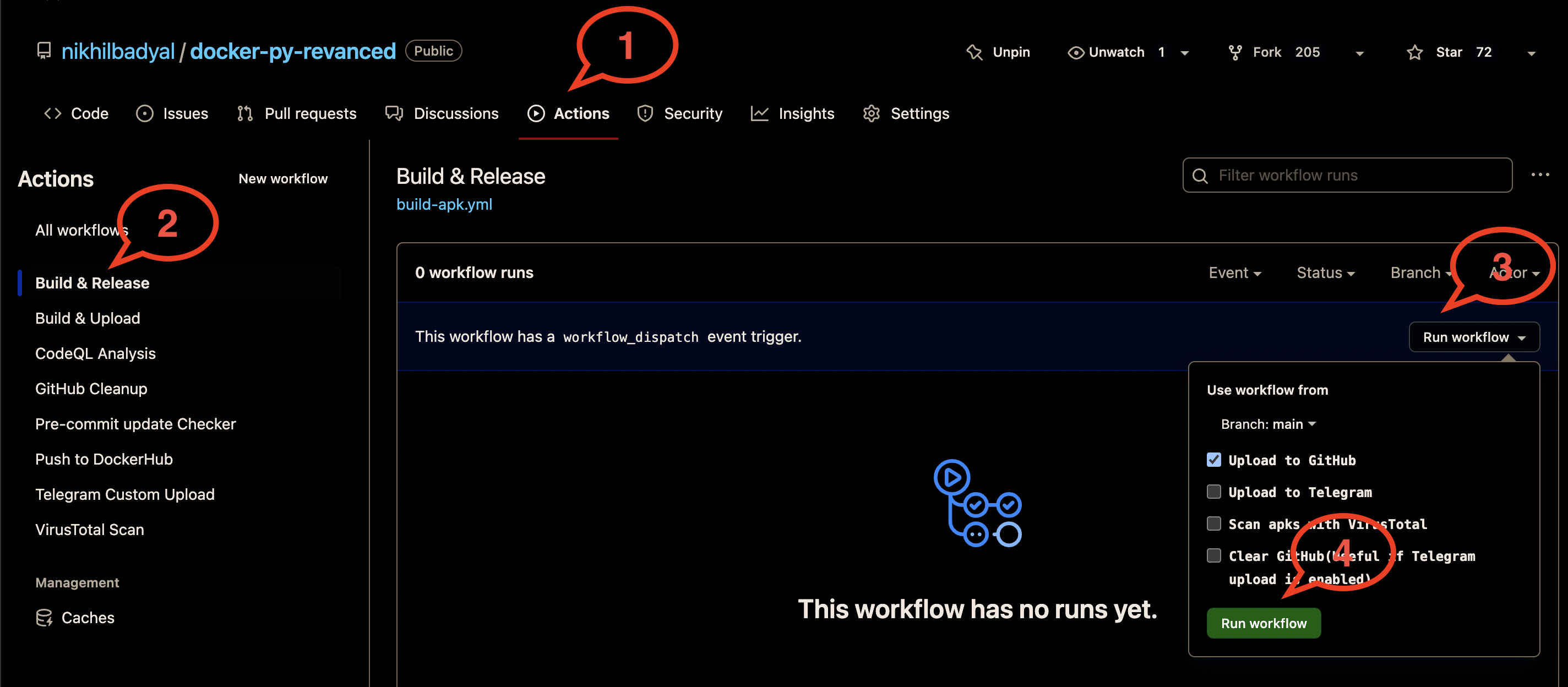 ARCHS_TO_BUILDinENVSinGitHub secrets(Recommended) in the format.GLOABAL_ARCHS_TO_BUILD=arm64-v8a,armeabi-v7a