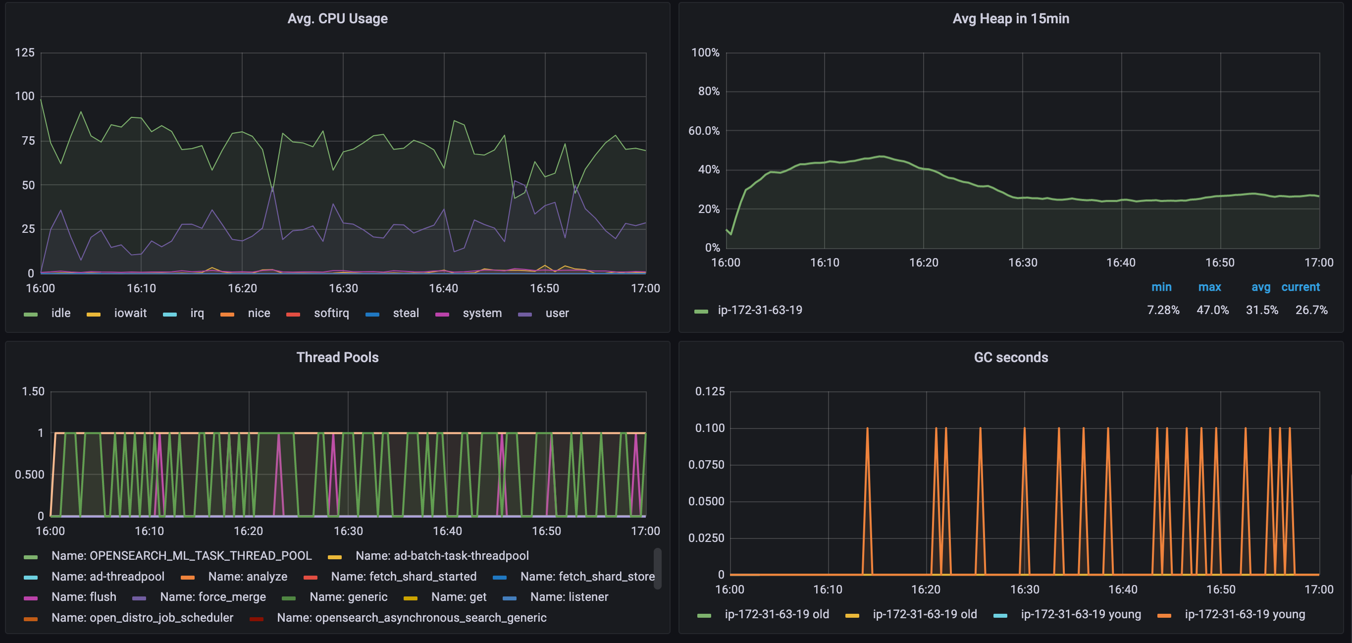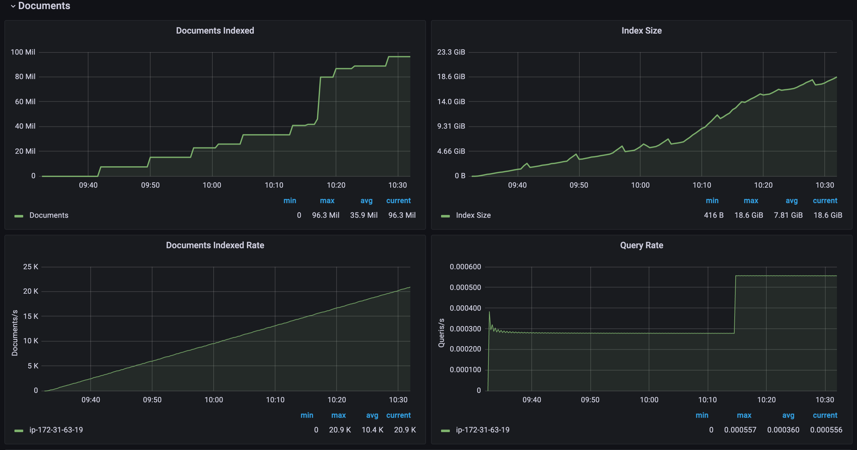 | 16 vCPU | 37.1GB / hour | 10.31MB / s | 31.7k docs / s | 0.62% |