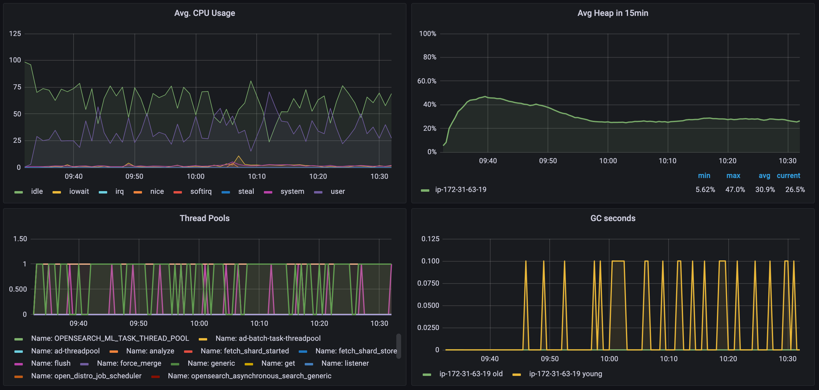 - CPU, memory, JVM heap size (manually set to half of OS memory)