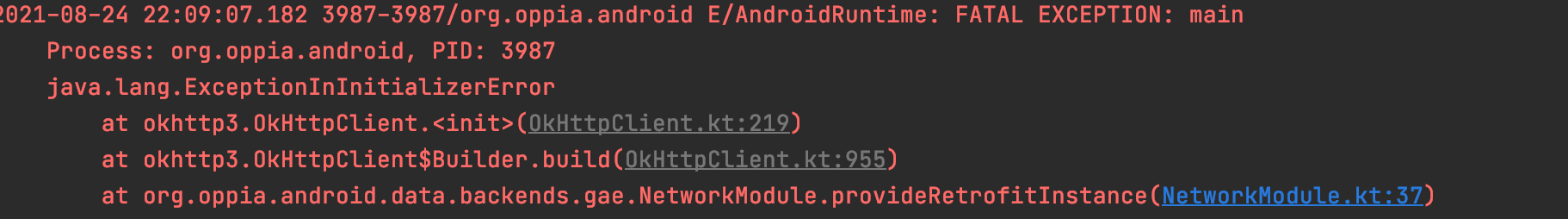 The screenshot is missing a lot of details--I can't help based on this information alone. Can you provide the full stacktrace? I'm also wondering if this fix will actually be sufficient per my other comment. If we're still pulling in newer OkHttp due to Retrofit, this might not actually fix the underlying issue. |