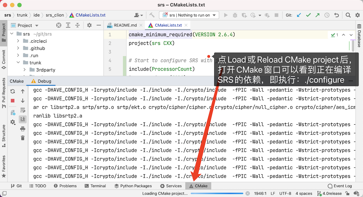 SRS只支持JetBrains的CLion,它是基于cmake编译的。