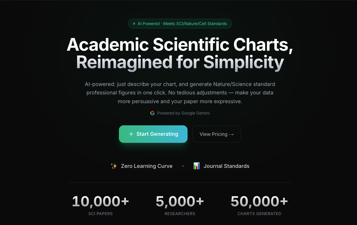 ScholarPlot is an AI-powered scientific figure generator designed to create publication-ready charts for top-tier journals like Nature, Science, and Cell. Using advanced AI technology (Nano Banana), it transforms your data into professional visualizations with just one click.